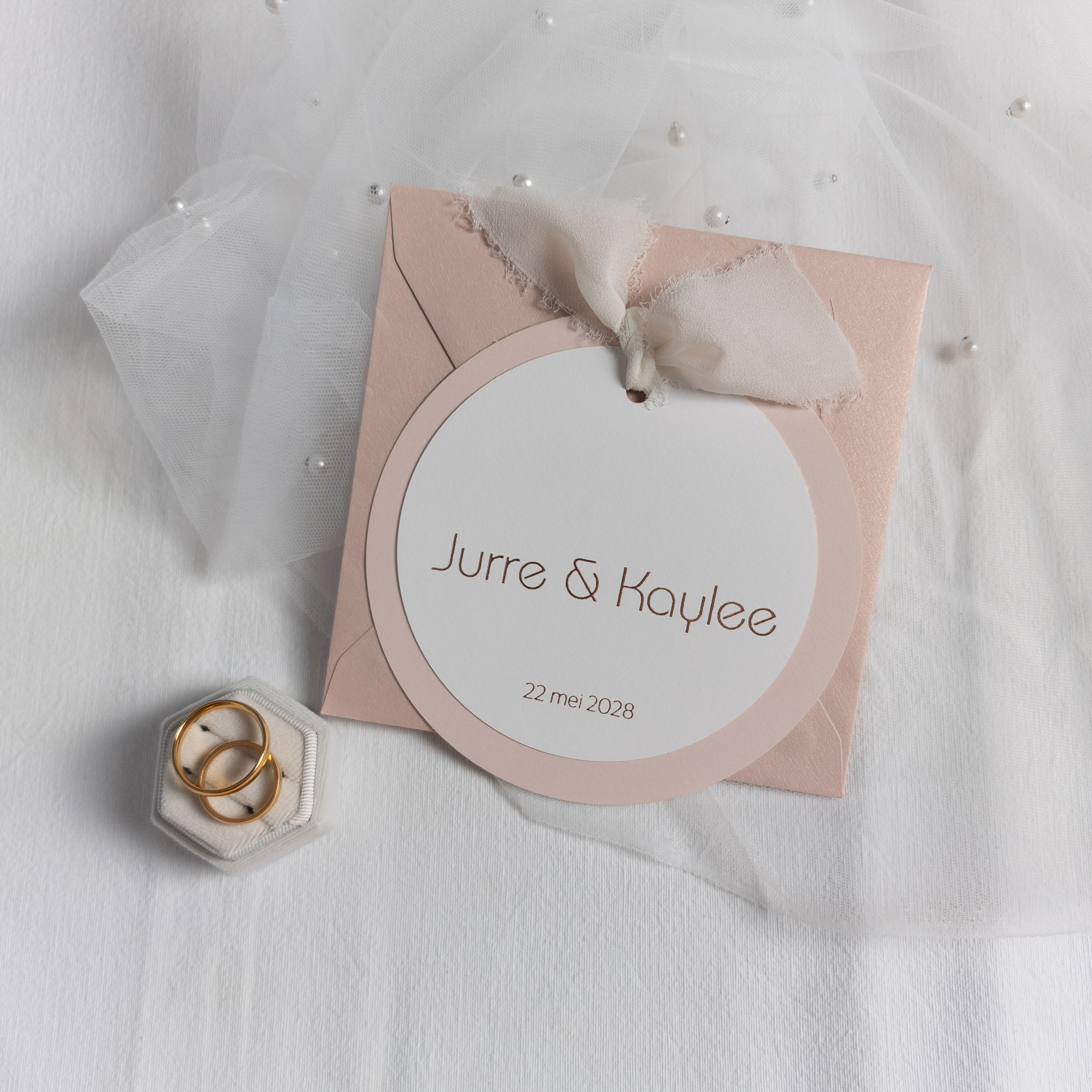 Pas lettertypen, kleuren en achtergrondkleuren naar wens aan, passend bij jullie eigen trouw huisstijl kleuren.