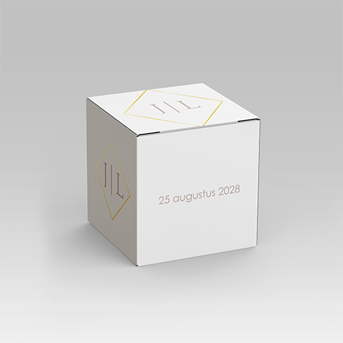 Doosje trouwbedankje goudfolie wit beige