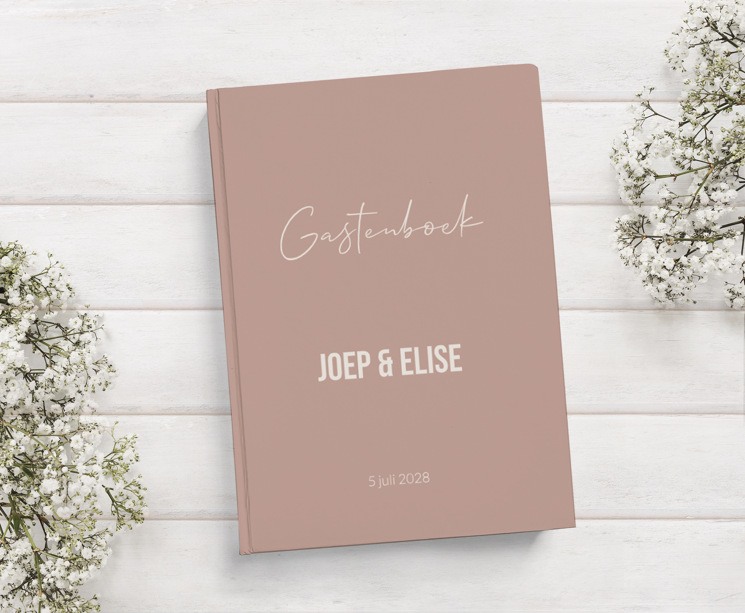 Gastenboek bij trouw huisstijl Something borrowed met blanco pagina's om door jullie gasten te worden versierd met bijvoorbeeld foto's, recepten en of lieve boodschappen.