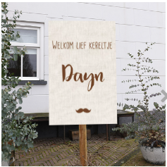 Schaf bij dit tuinbord nog zelf een paal en bevestigingsmateriaal aan bij je lokale bouwmarkt. Zet de schroeven niet te strak vast om scheuren of breuk te voorkomen. Haal hem bij harde wind binnen!