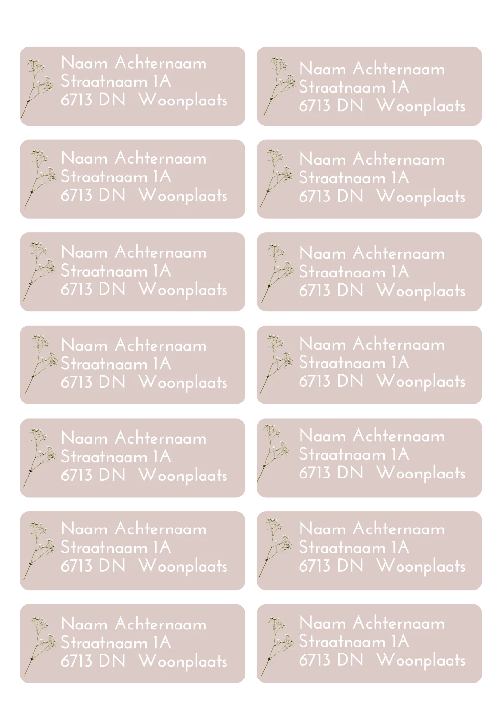 Adressticker roze wit gipskruid