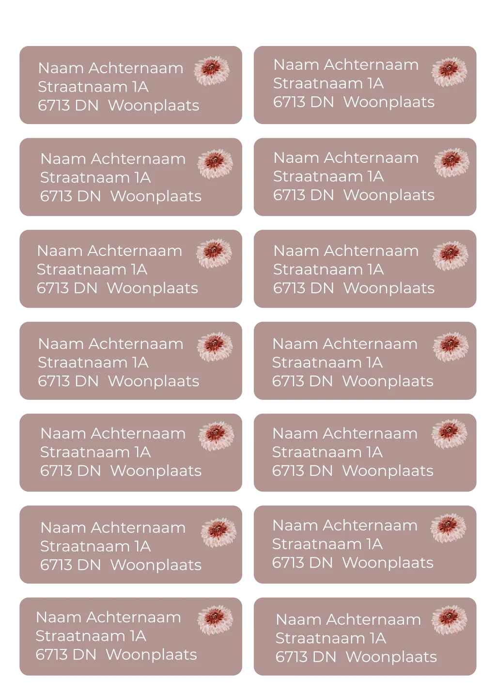 adresstickers oudroze wit dahlia