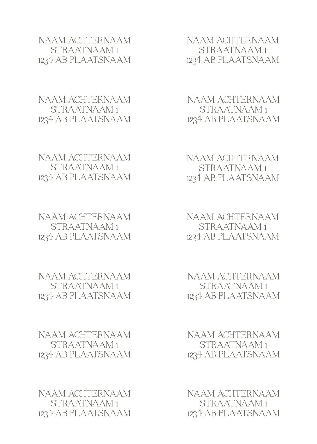 Adresstickers in de maat 97x 34 mm met afgeronde hoeken. Vul de adressen in van jullie gasten en plak deze op de ecru biotop enveloppen! Met de bijpassende sluitstickers heb je een heel mooi pakketje om te verzenden en uit te pakken.