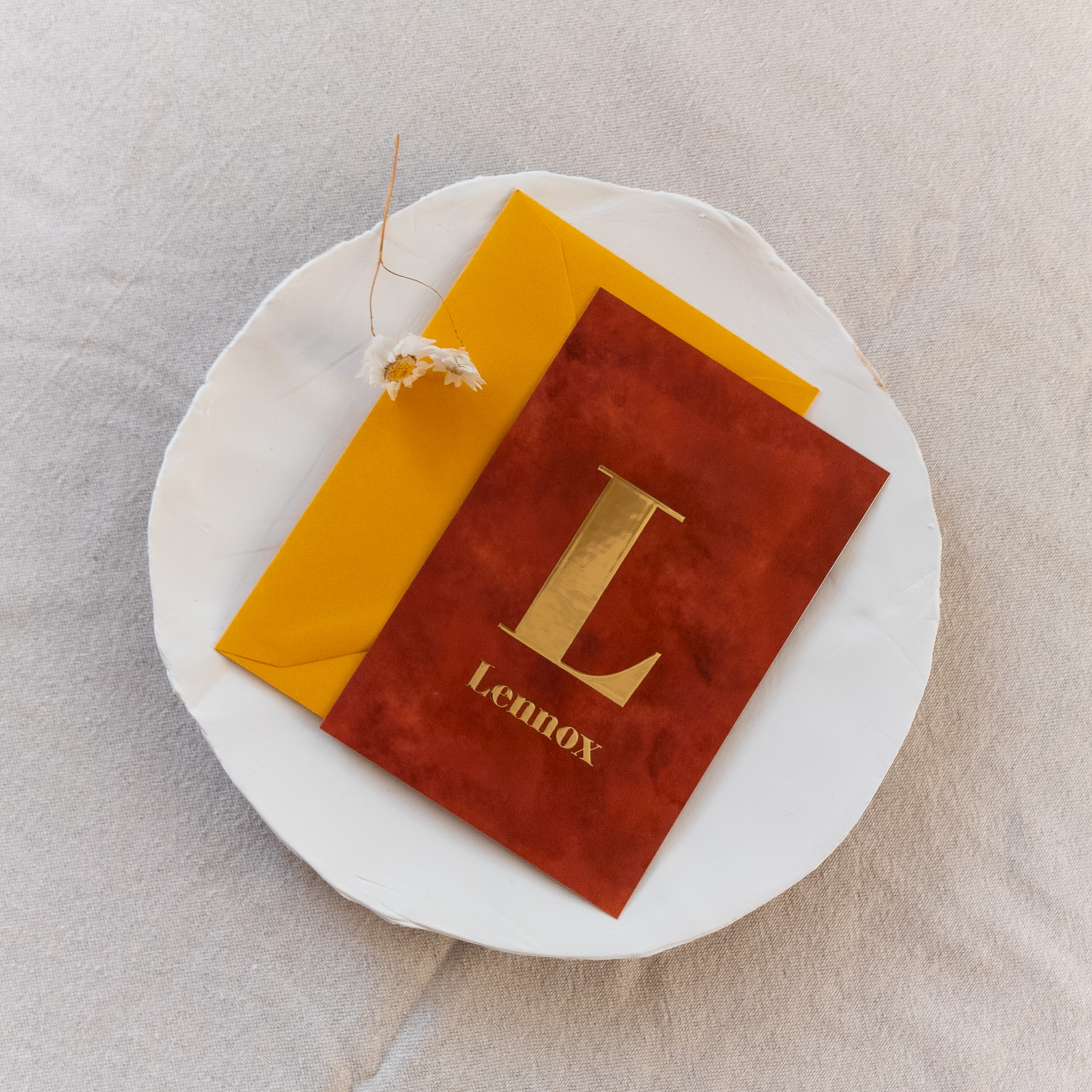Herfst geboortekaartje in warme roest kleuren. Lennox