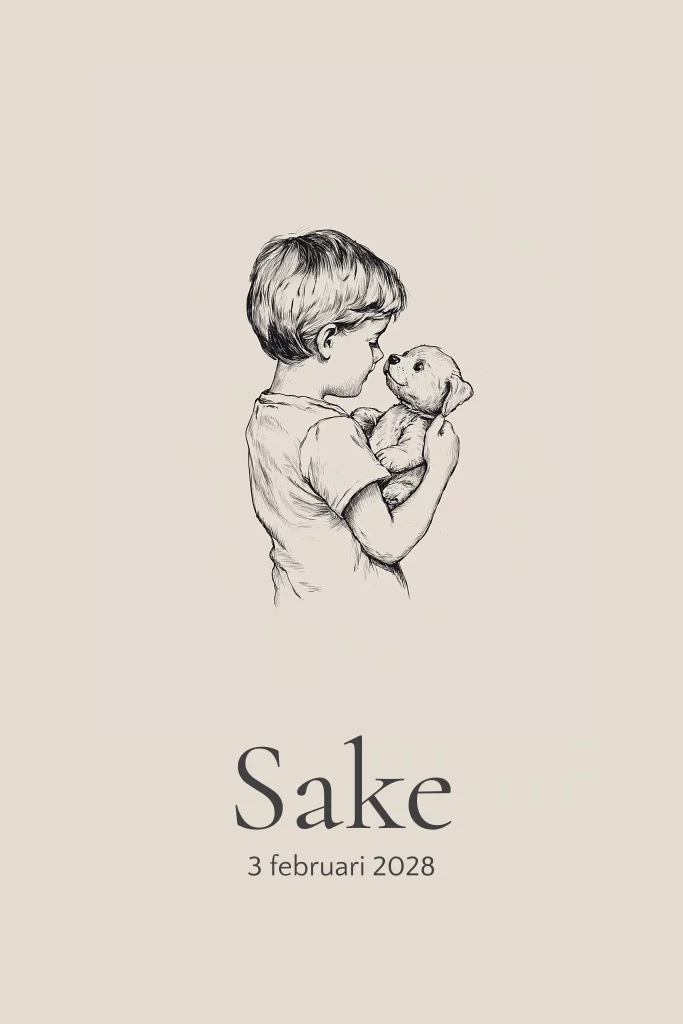 Lief nostalgisch geboortekaartje in beige met donkergrijs. De achtergrond kleur van de kaart kan niet worden aangepast.