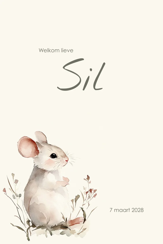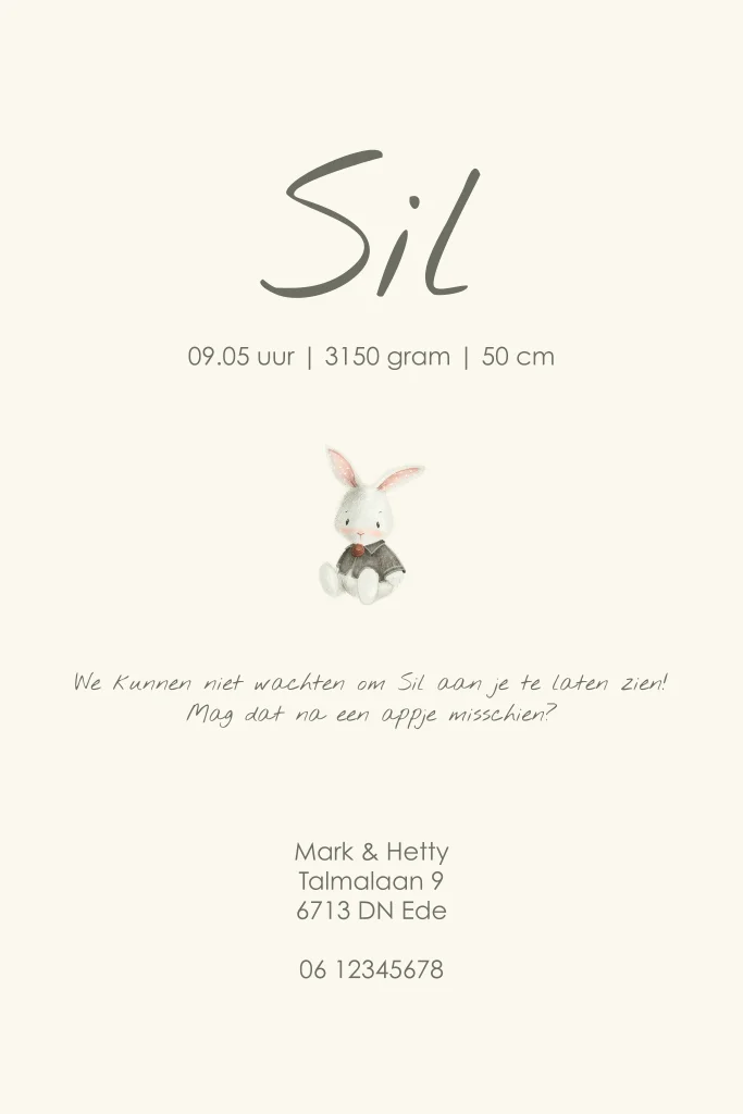 Gecombineerd met grijs groene tekstkleur en een lichte achtergrond, leent dit geboortekaartje zich erg goed om op linnen papier af te drukken voor een extra nostalgisch effect.