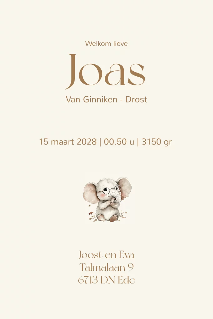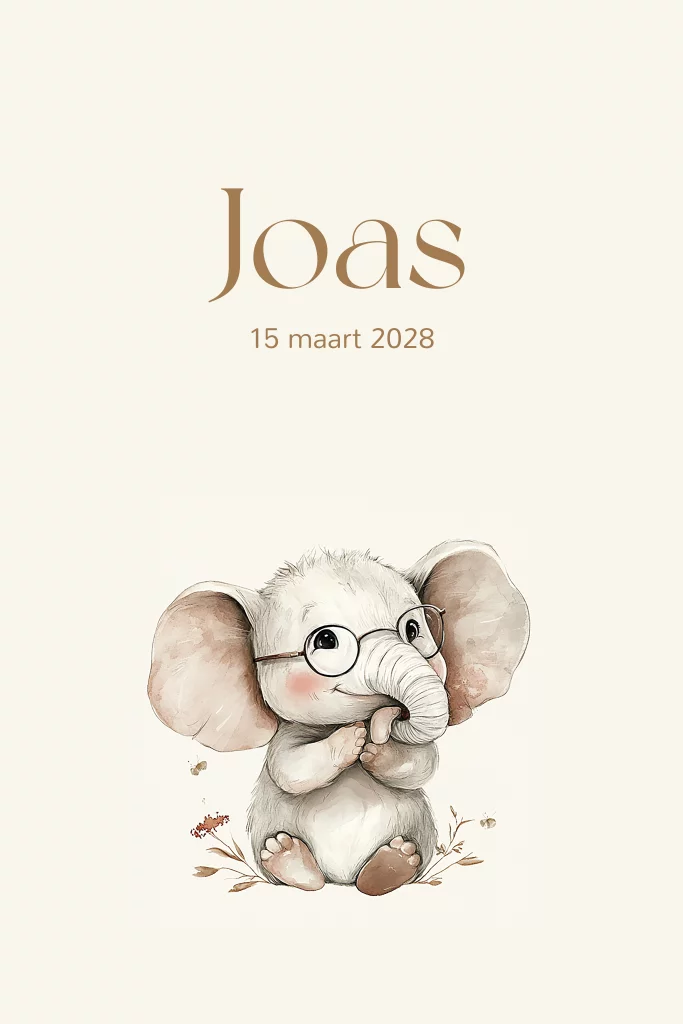 Geboortekaartje olifantje met bril