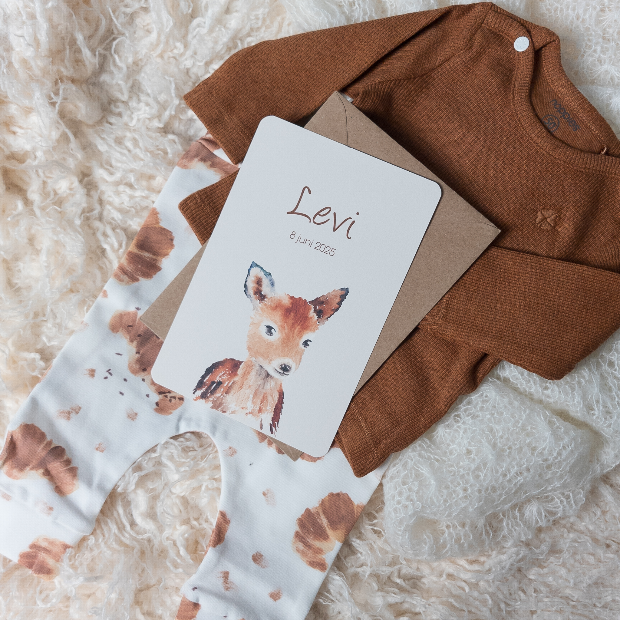 Geboortekaartje met watercolor hertje en ronde hoeken