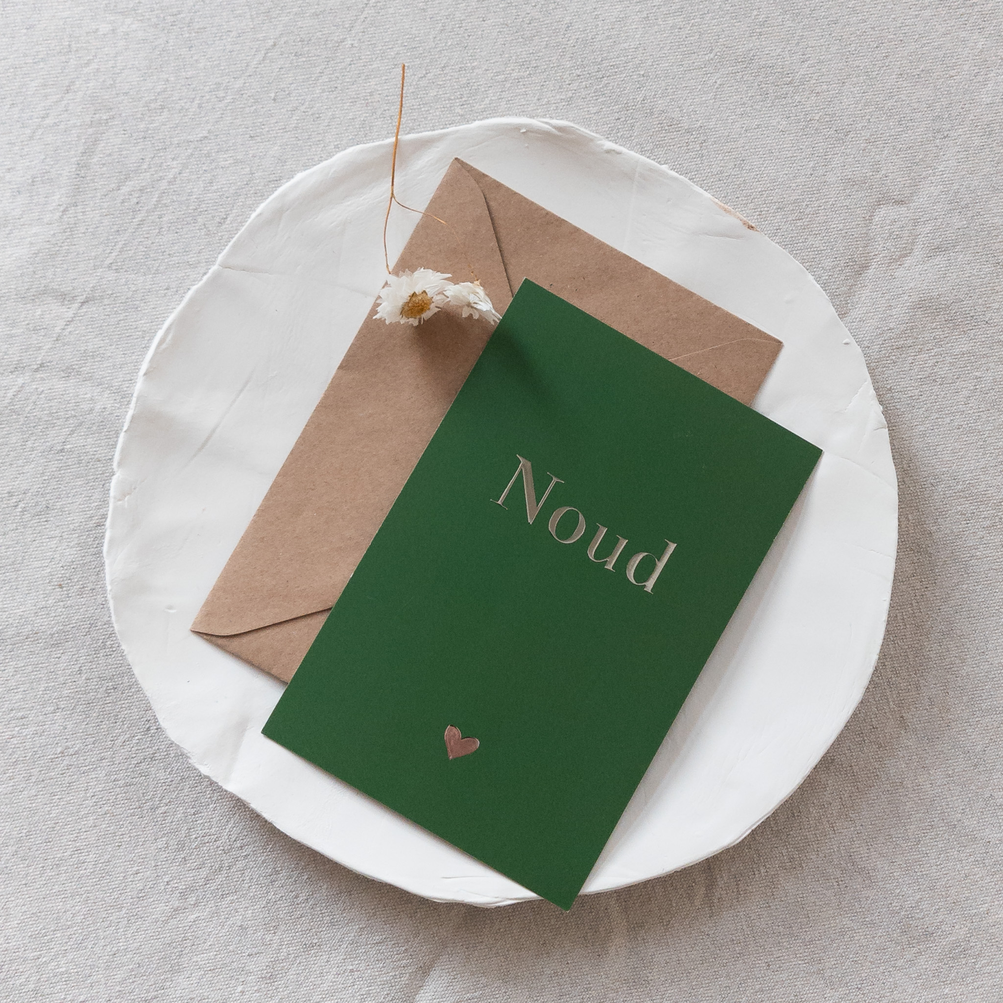 Mooie donkergroene kaart gecombineerd met zilverfolie! Minimalistisch design. Noud