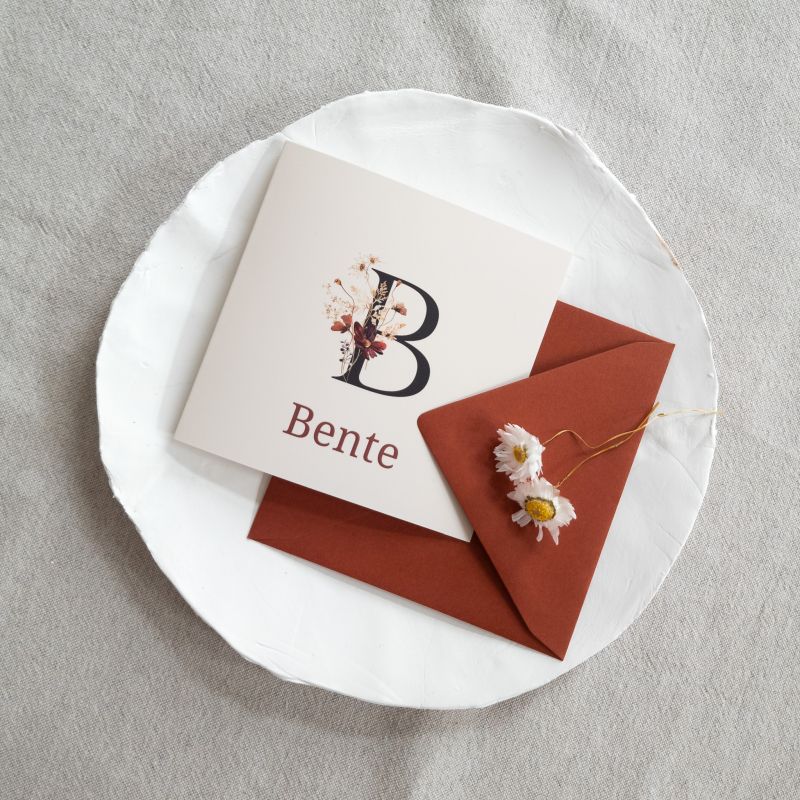 Dit lieve herfst geboortekaartje kun je op elke gewenste achtergrond maken en met elke gewenste letter. Combineer het met UV spotlak in de kleur van de bloemen of kies voor een folie kleur!