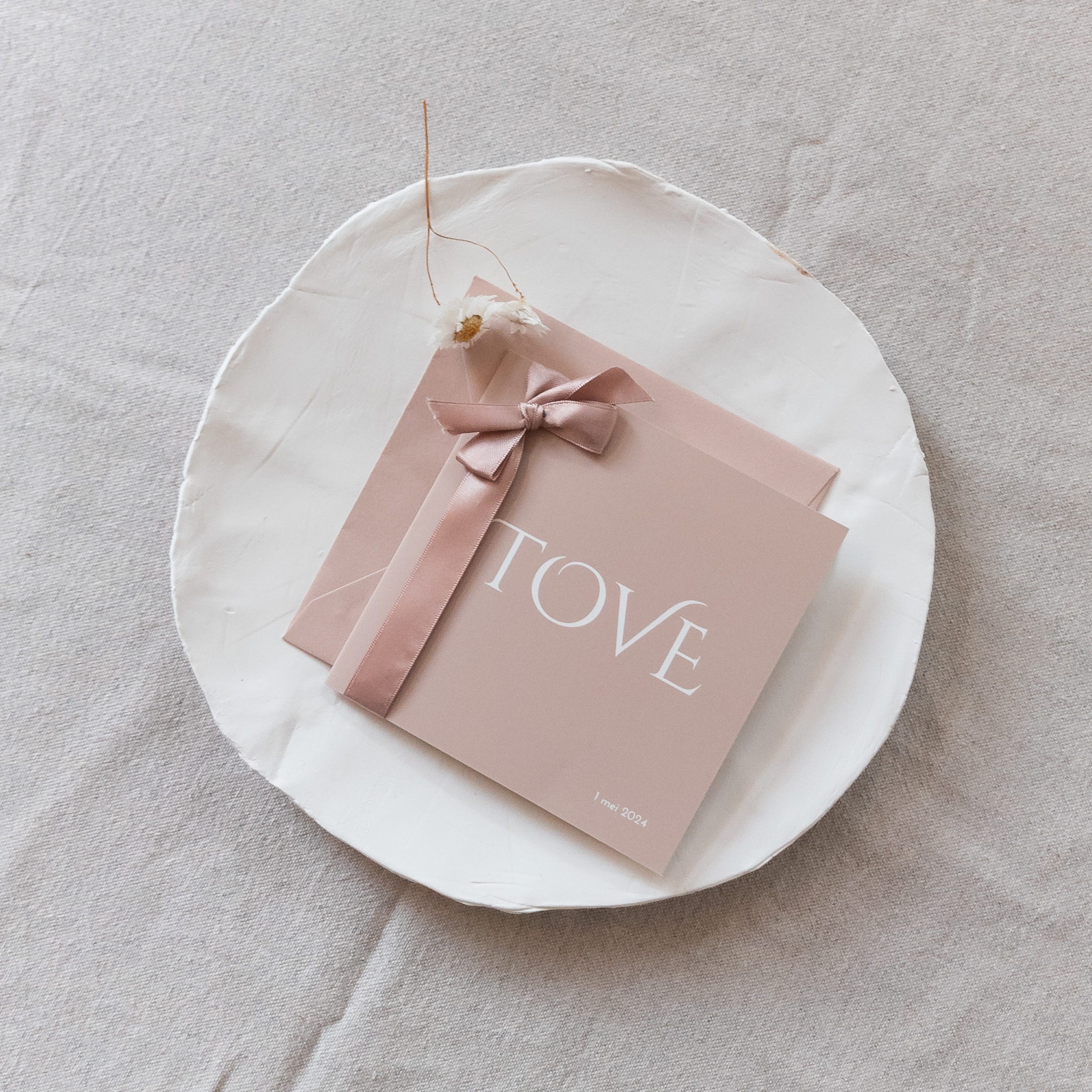 Lief, rustig geboortekaartje in een prachtige kleur. Combineer met onze lieve lintjes. Dit vierkante geboortekaartje kun je in diverse formaten bestellen. Op het voorbeeld is het kaartje 13x13 cm en gebruikte ik 50 cm lint. Deze specifieke kleur is alleen via mijn privé collectie te bestellen. Stuur me een berichtje om de mogelijkheden te bespreken!