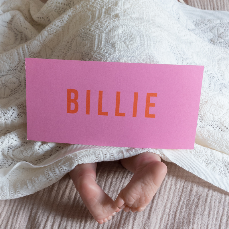 Een geboortekaartje in roze met rood. Zo, daar kom je mee binnen! Durf jij deze nieuwste trend aan? Pas zelf je kleurencombinatie aan! Wil je de kleuren zo helder mogelijk, dan bestel je dit kaartje het best op mat coated.