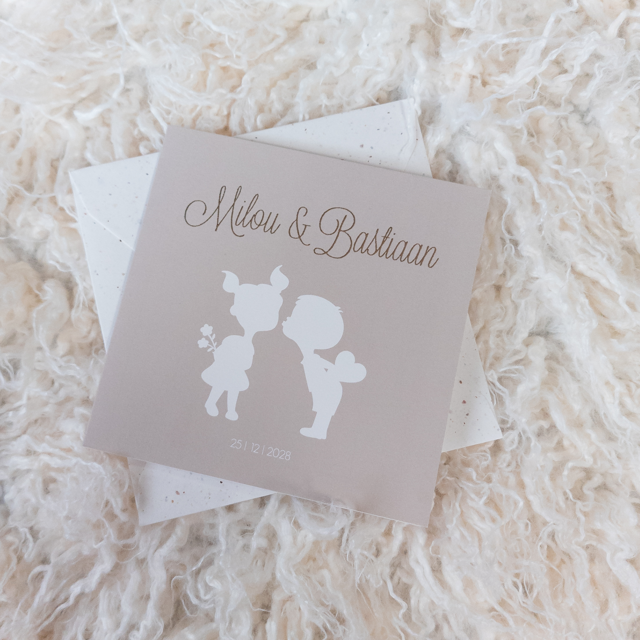 Druk je het kaartje af in 13x13, dan heb je enveloppen in maat 14x14 cm nodig!
