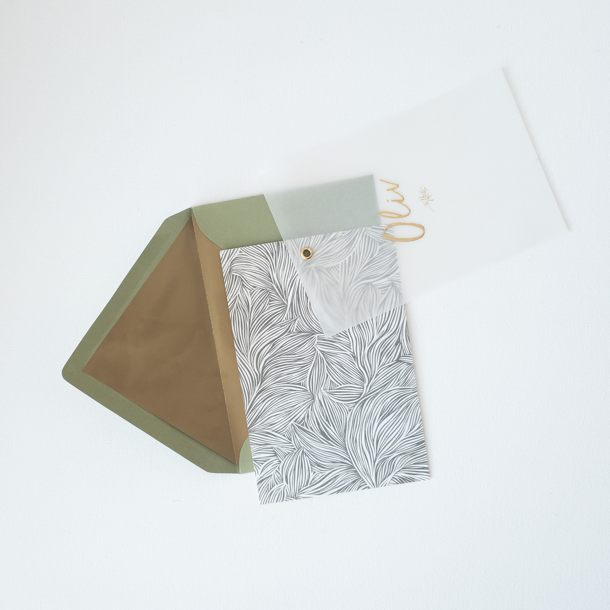 Super mooi op linnen papier: Dit is deel 2 van geboortekaartje Oliv. Je bewerkt en bestelt de achterkaart. Vervolgens bestel je het kalkpapier voorblad er nog los bij.