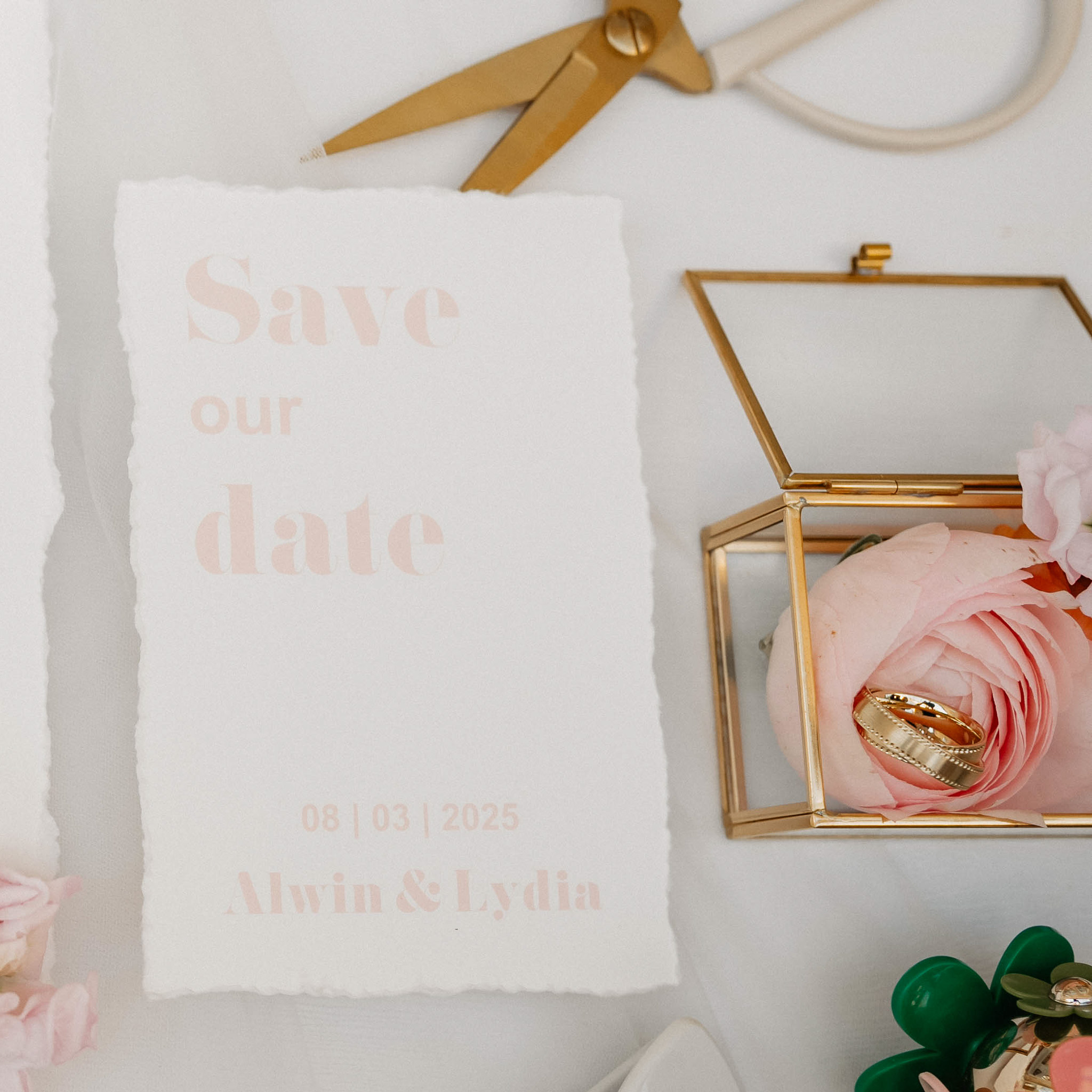 Deze te gekke save the date kaart met DIY scheurrand heeft de afmetingen 10x15 cm na scheuren.