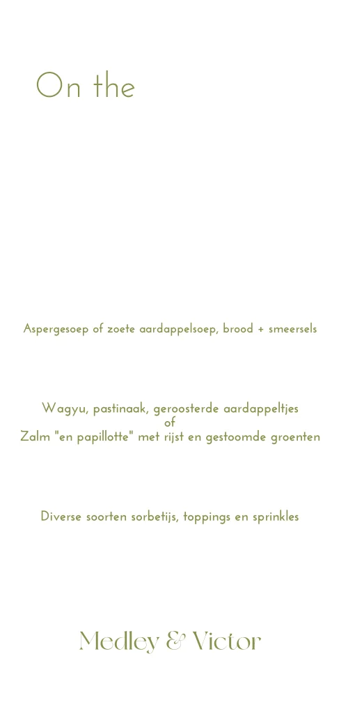Passend bij de trouw huisstijl Meadow moments. Menukaart op kalkpapier, wat in de stationery terug komt en voor herkenning zorgt.
