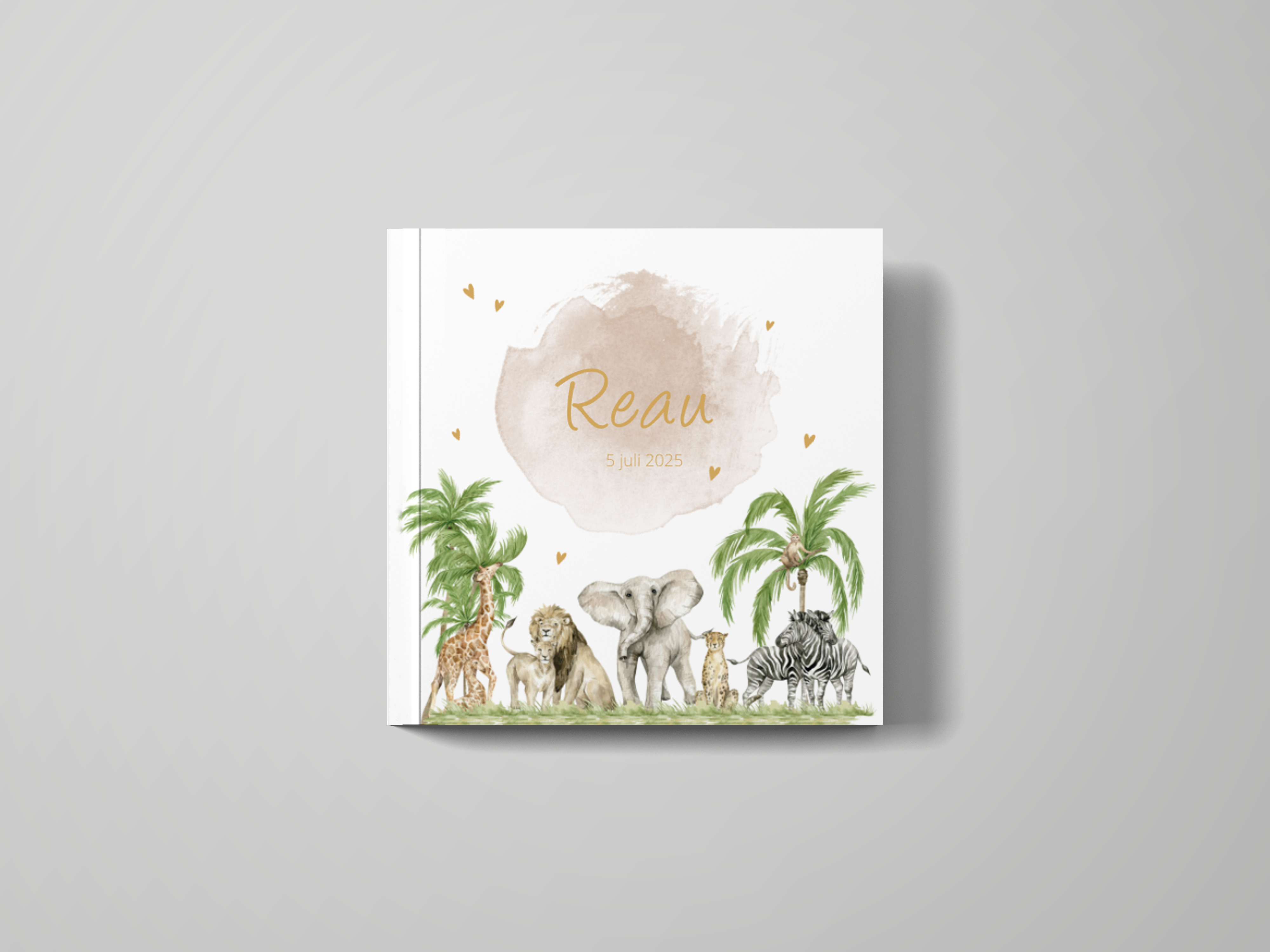 Een kraambezoekboek helemaal bijpassend bij het kaartje Reau. Met wilde dieren en hartjes. Het kraambezoekboek is 25x25cm. Voor de samenstelling en inhoud zie onderaan de pagina met kraambezoek boeken.