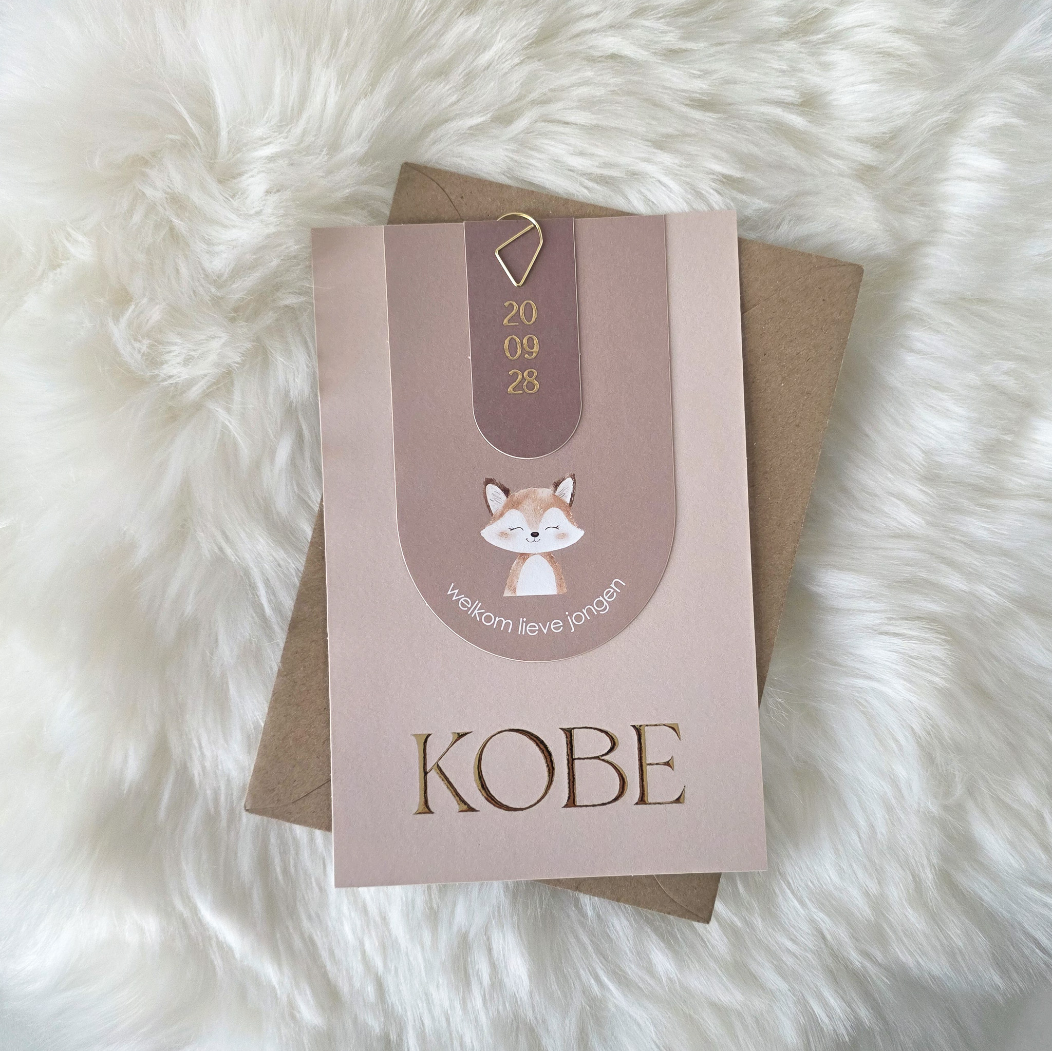 Geboortekaartje jongen beige bruin vosje