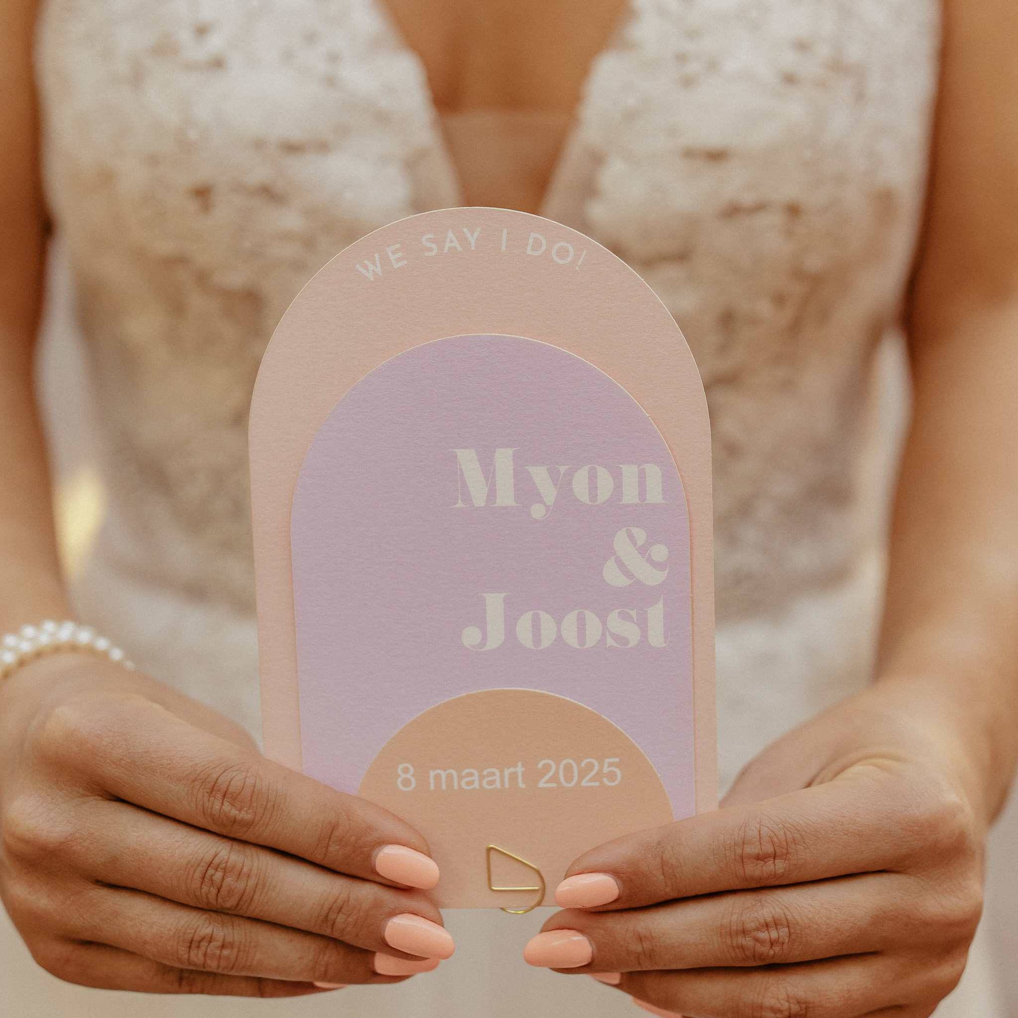 Pastel trouwkaart roze lila peach