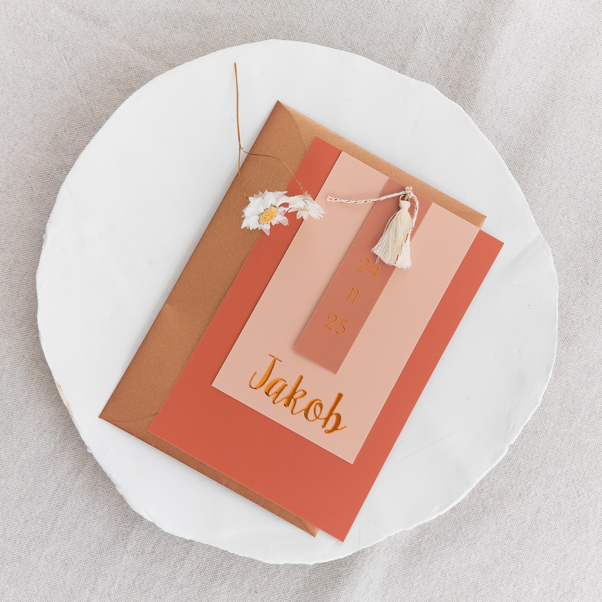 Stapel geboortekaartje jongen terra roest