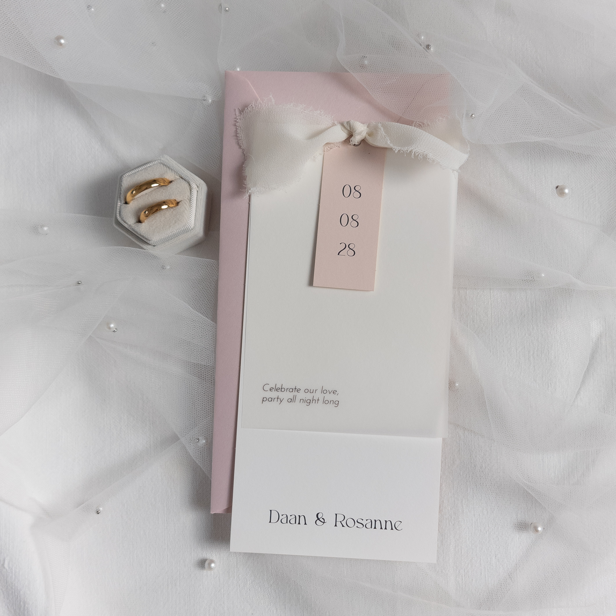 Trouwkaart met label en kalkpapier