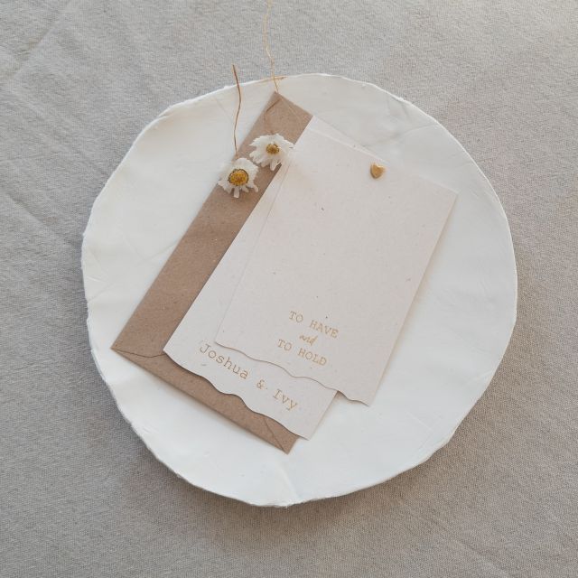 Deze twee delige set heeft al gaatjes en hoef je thuis alleen nog maar compleet te maken met lint, touw of koord van jouw keuze. Een prachtige basis voor jullie trouw huisstijl die je naar wens kunt uitbreiden met een save the date kaart, menukaart en onderdelen die jullie er graag bij willen. Zo mooi als alles mooi bij elkaar past!