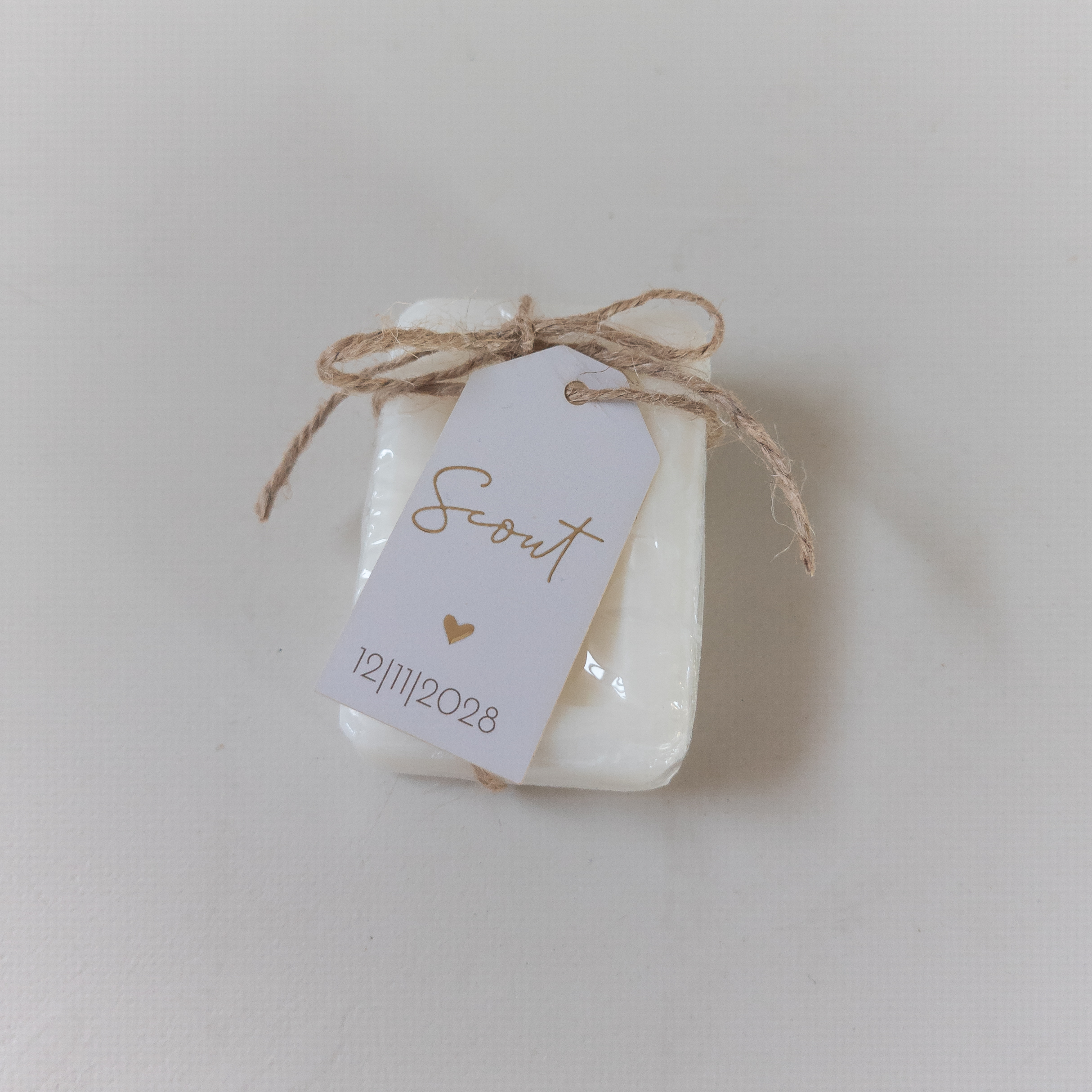 Geef dit label dezelfde stijl als je geboortekaartje en hang deze met lint of touw aan je geboorte bedankje of doopsuiker.