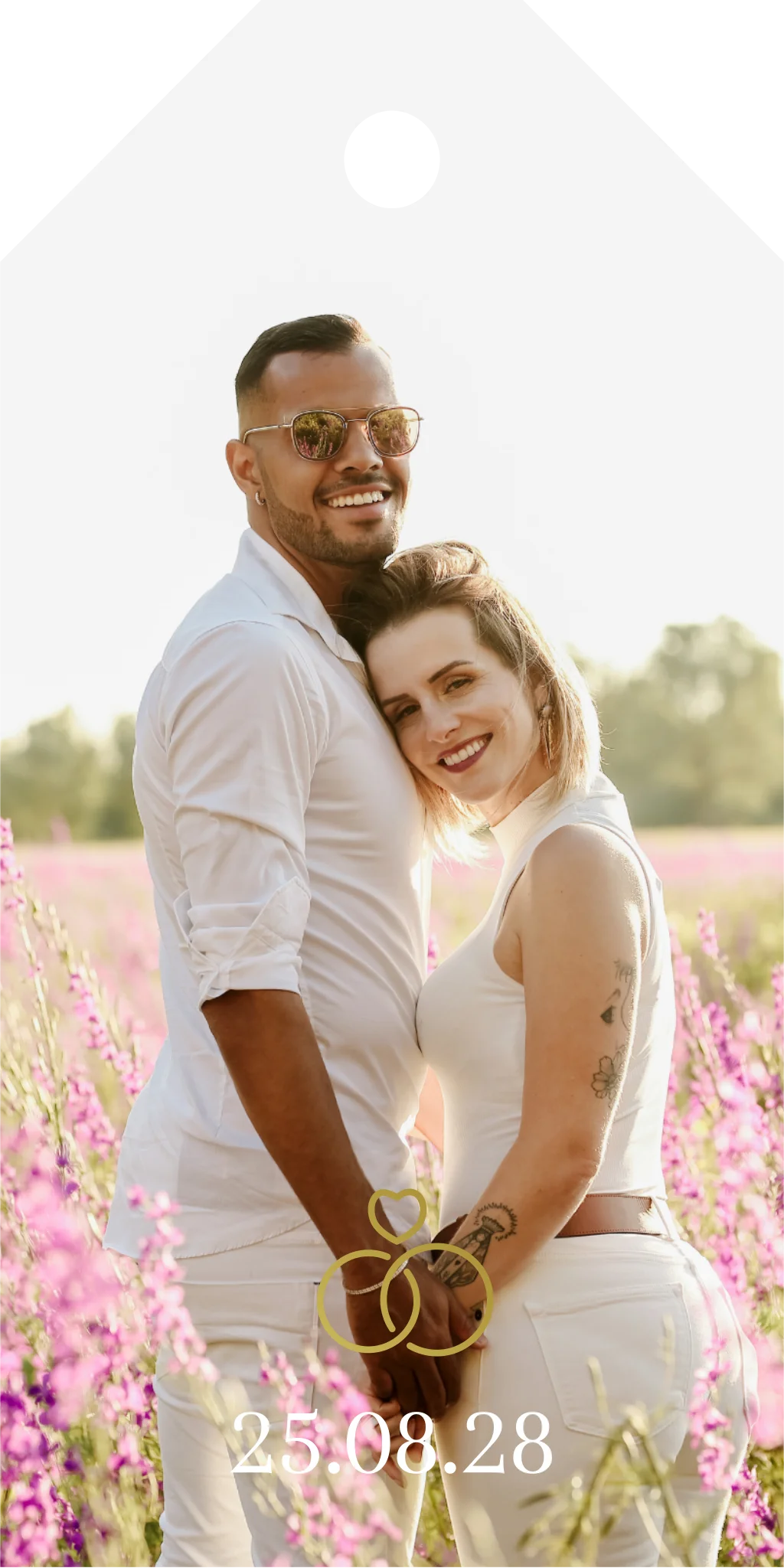 Maak dit label in dezelfde stijl als je trouwkaarten en hang deze er los aan met touw of lint!