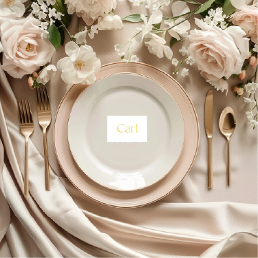 Naamkaartjes die passen bij de huisstijl van Carl en Lily. De naamkaartjes zijn ongeveer 8x5 cm en er zitten er 10 op een vel. Je duwt de kaartjes zelf uit het A4 vel.