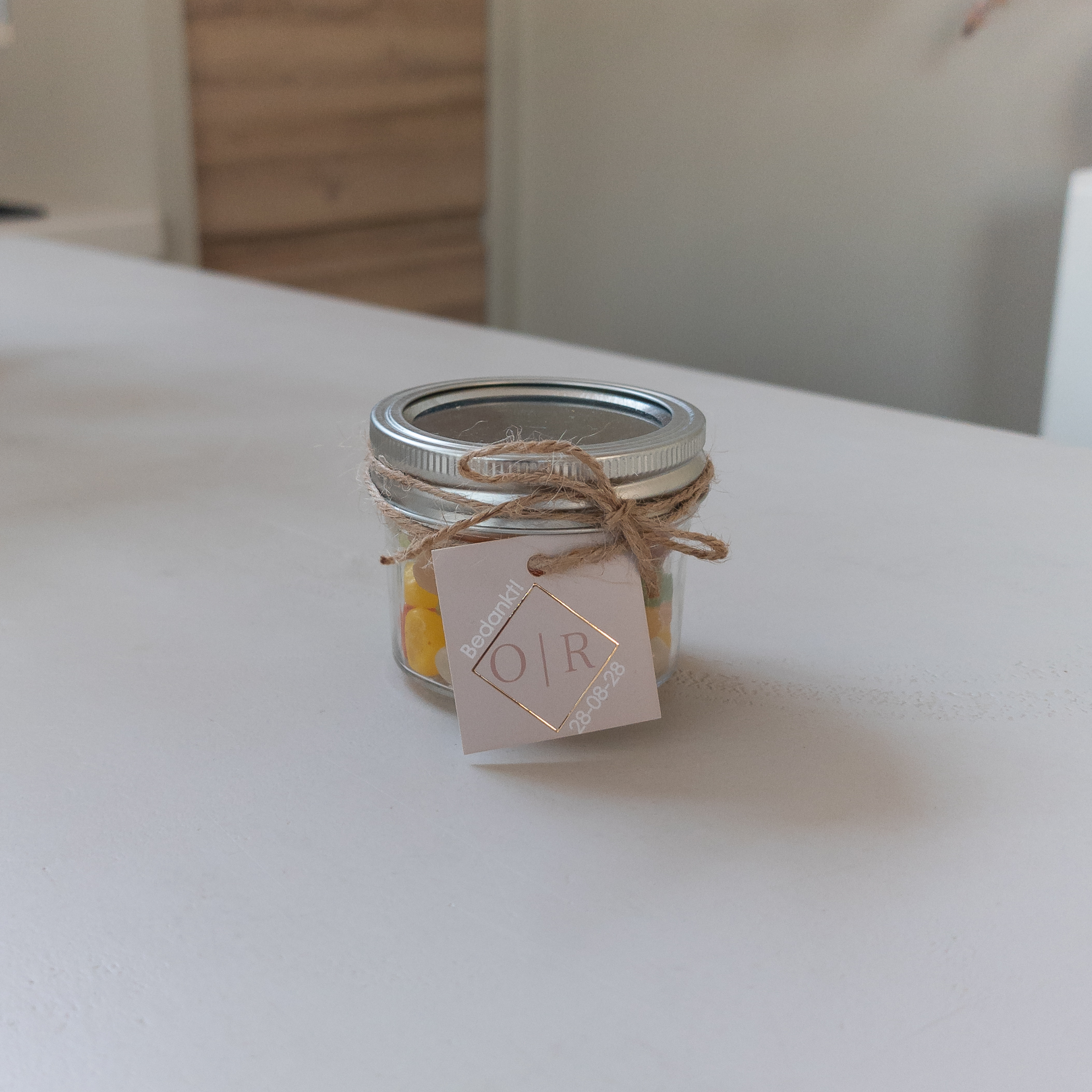 vierkant label voor aan trouwbedankjes