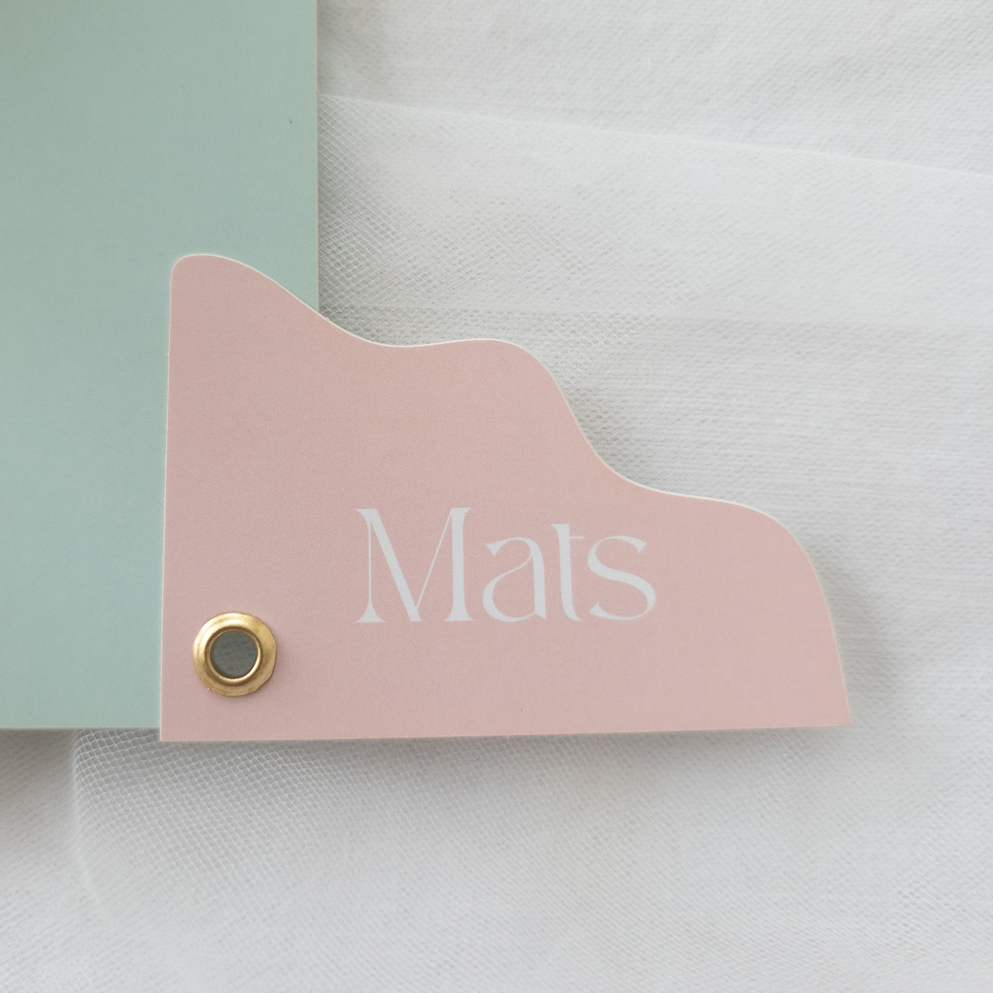 Deze te gekke naamkaartjes passen helemaal bij de kleurrijke menukaarten! Hou rekening met het invullen van de namen; er komt nog een gaatje met ringetje links onderin. Zorg ervoor dat je niet dwars door een naam hoeft te ponsen.