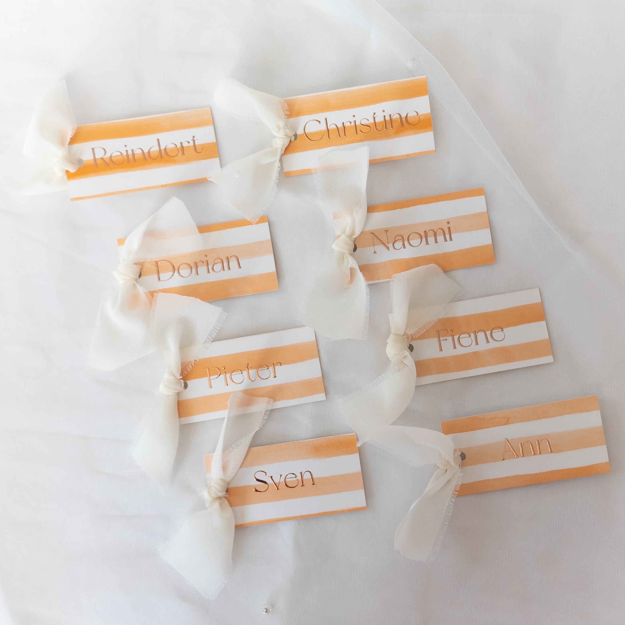 naamkaartjes pastel strepen oranje