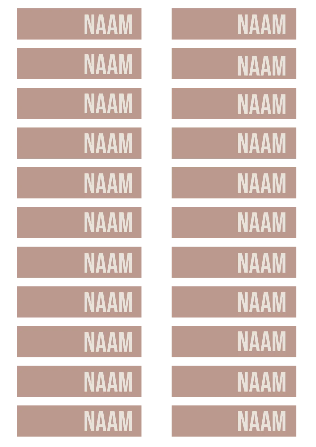 Wedding stationery Something borrowed maak je compleet met deze toffe naamkaartjes! De afmetingen zijn 8 bij 2 cm en er zitten 22 naamkaartjes in een vel. Je kunt het bestand kopiëren en een andere naam geven, om zo al je gasten te kunnen voorzien van een naamkaartje. Deze bevestig je met een paperclip of met onze flenstang met gouden ringetjes aan de menukaart. De achterkant van de naamkaartjes blijven onbedrukt.