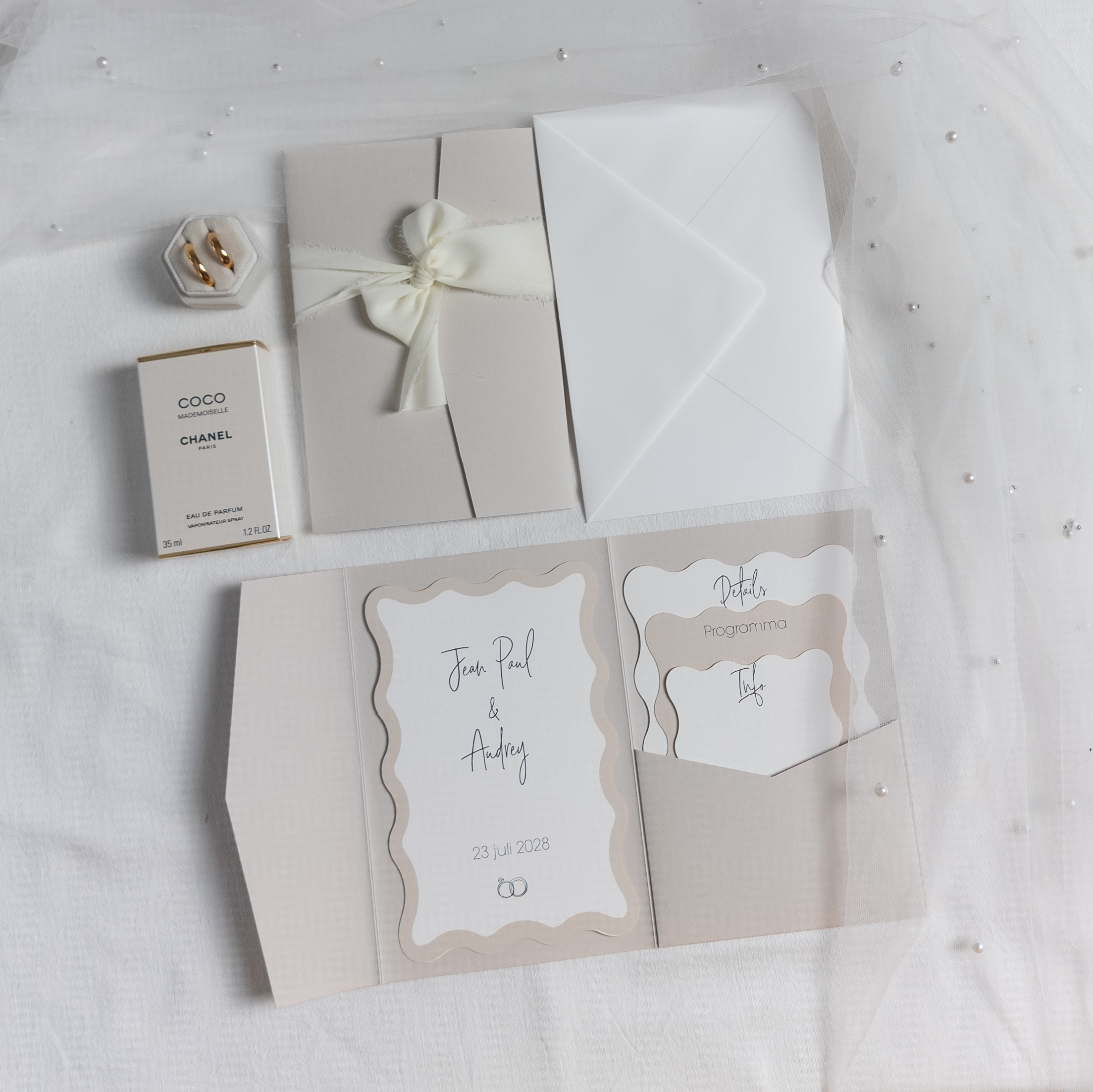 Pocketfold trouwkaart set wave