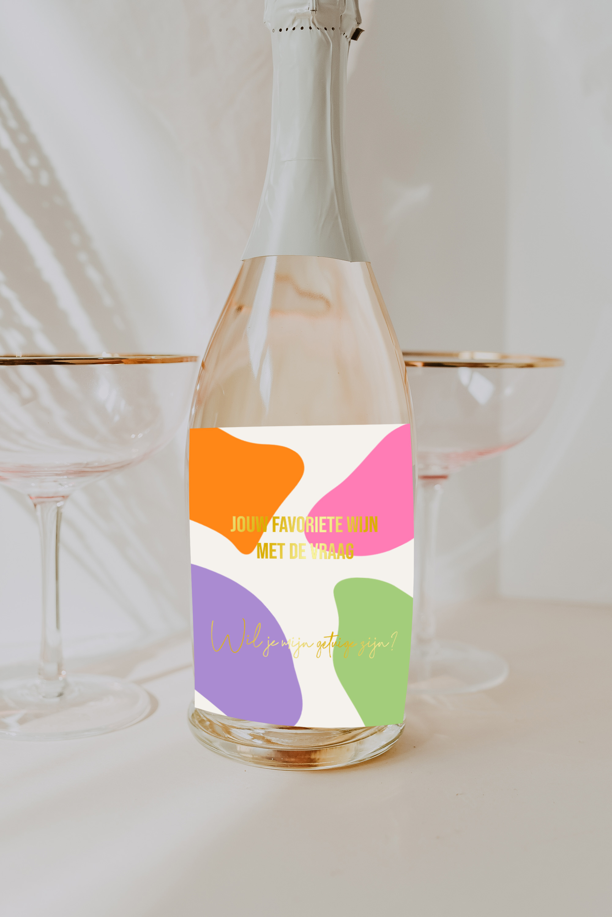 5 unieke wijnetiketten met een afmeting van 8 bij 11 cm die je los van elkaar kunt bewerken. Zo kun je iedereen verrassen met jullie grote nieuws!