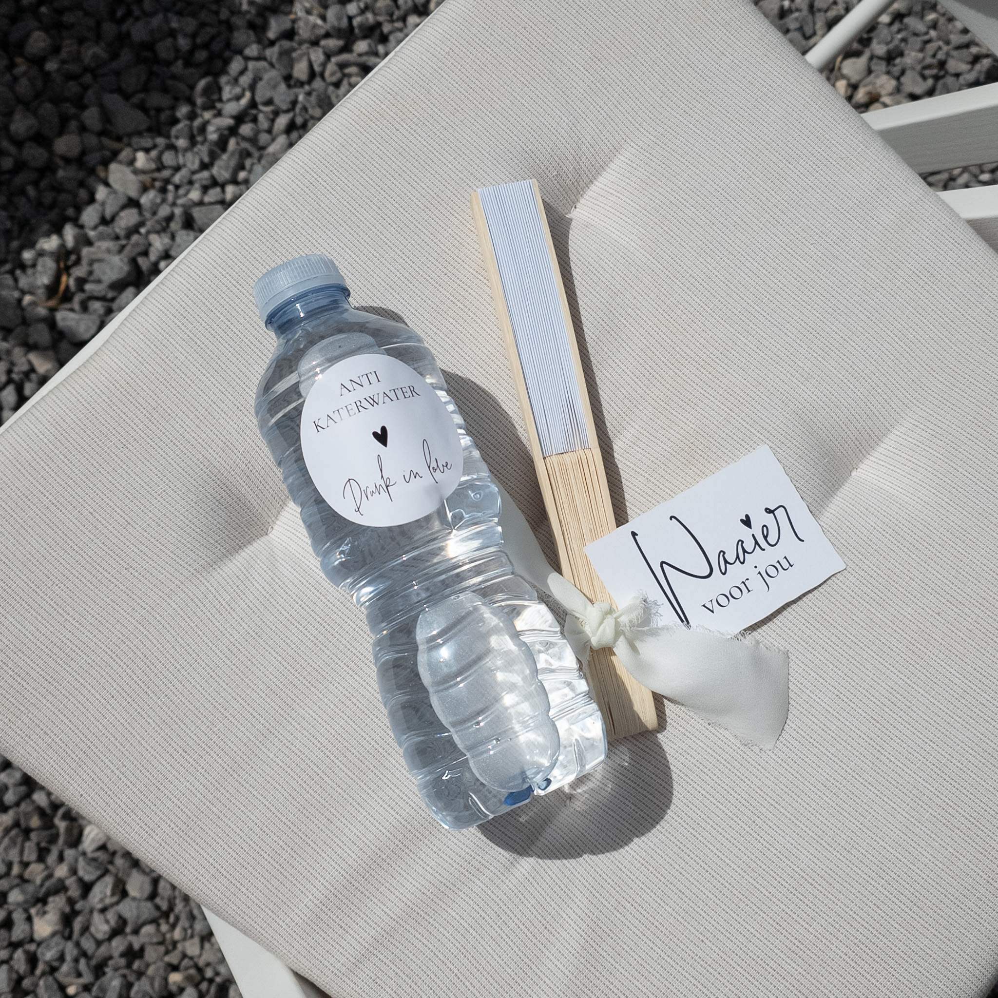 Plak deze stickers op een flesje water en voer zo je hele trouw huisstijl door!