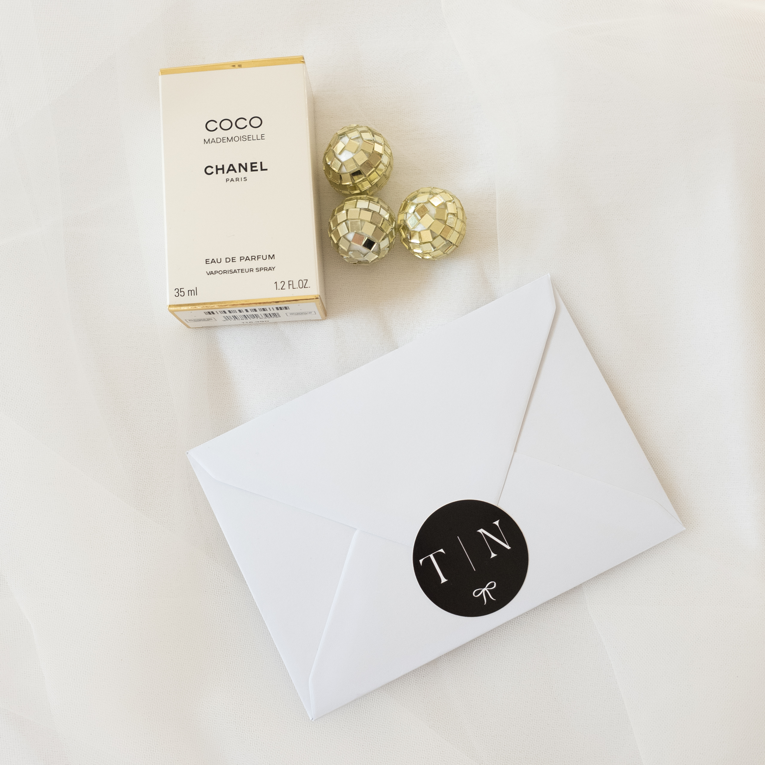 Deze sluitsticker van 44 mm doorsnede past helemaal in de trouw huisstijl black and white van Tamara en Nikky.