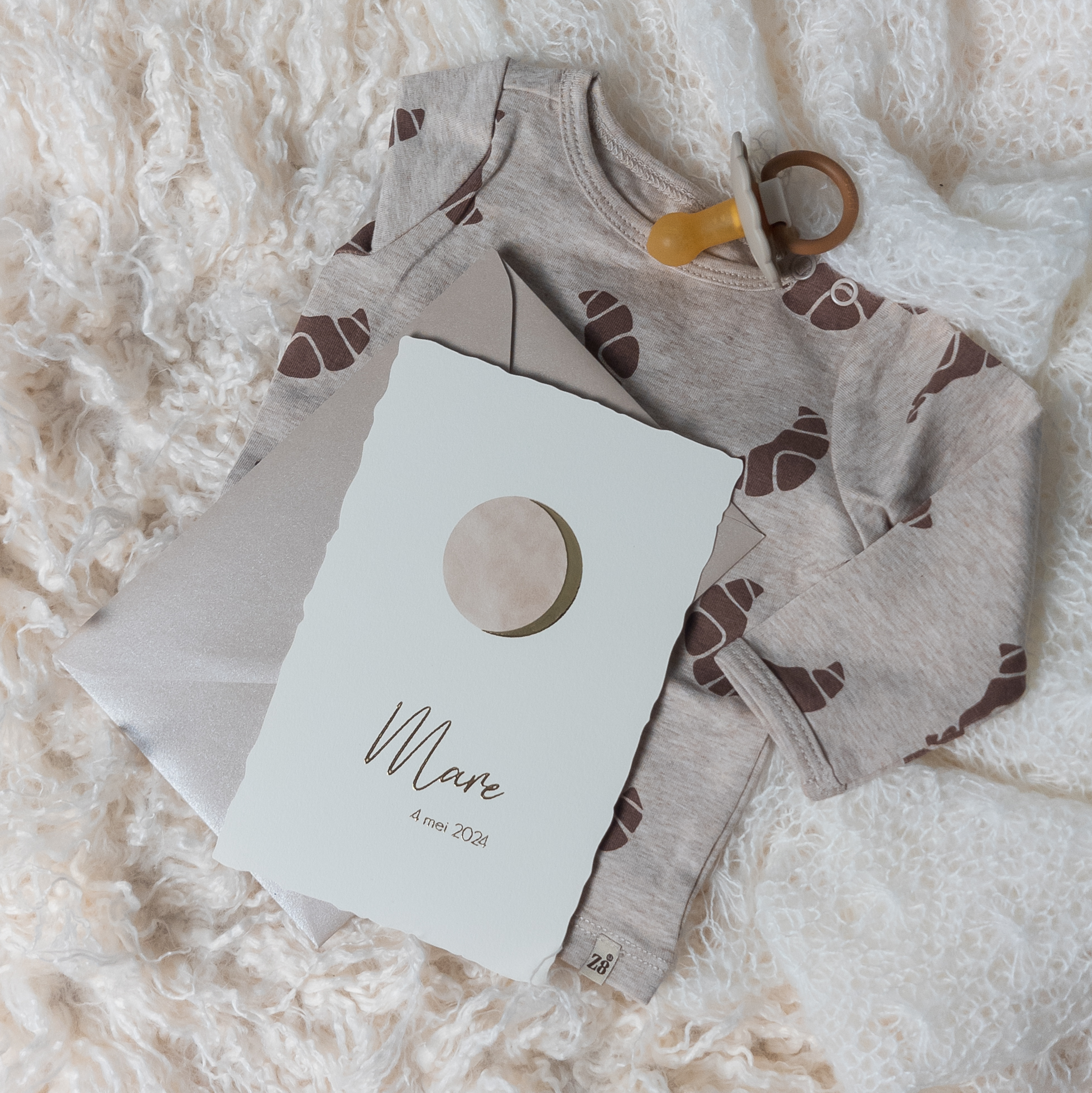 Geboortekaartje handgeschept papier look met maanstand