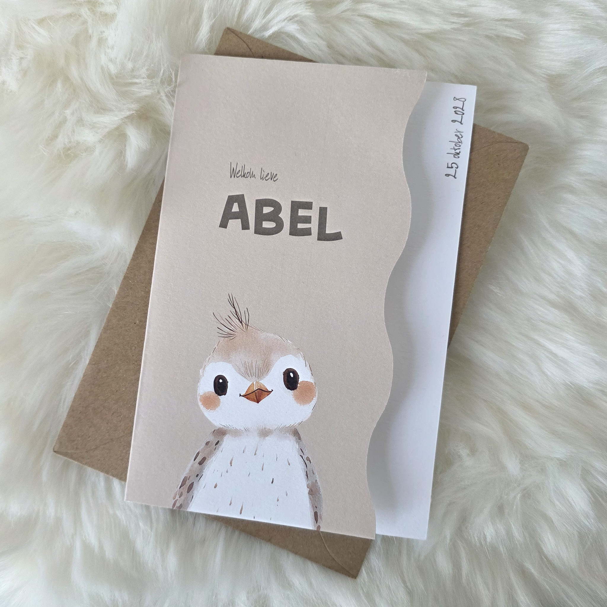geboortekaartje golfvorm diertje beige