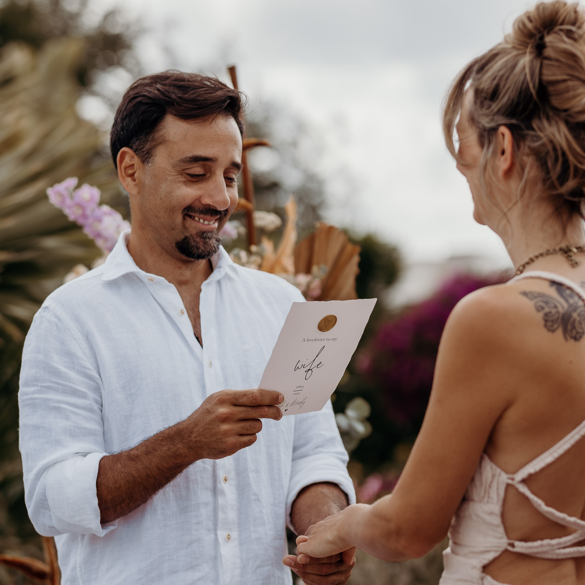 Deze enkele geloften kaart is voor de bruidegom om zijn handgeschreven geloften voor te lezen aan zijn bruid. Natuurlijk ontbreekt de waxzegel niet!