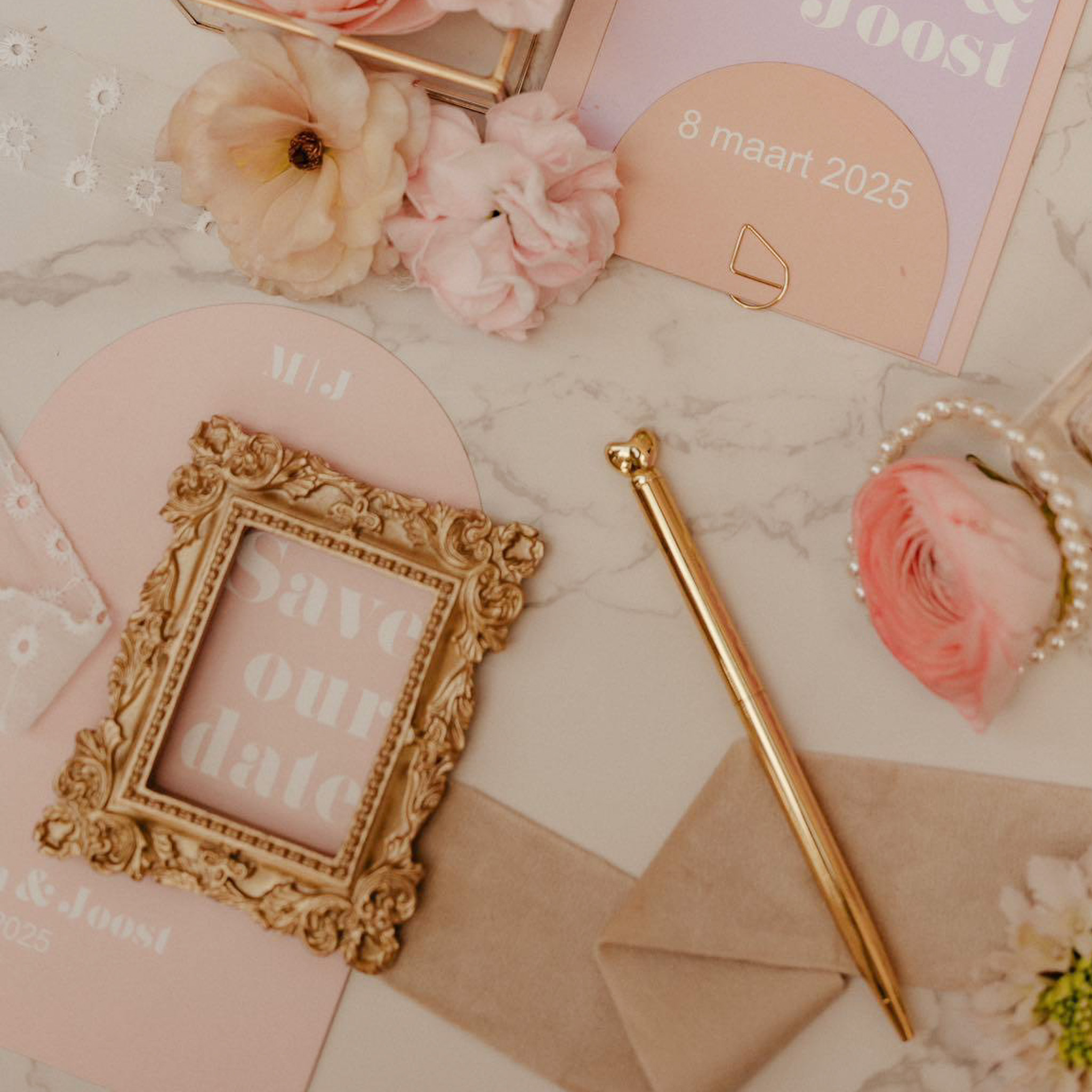 Save the date boogvorm pastel roze