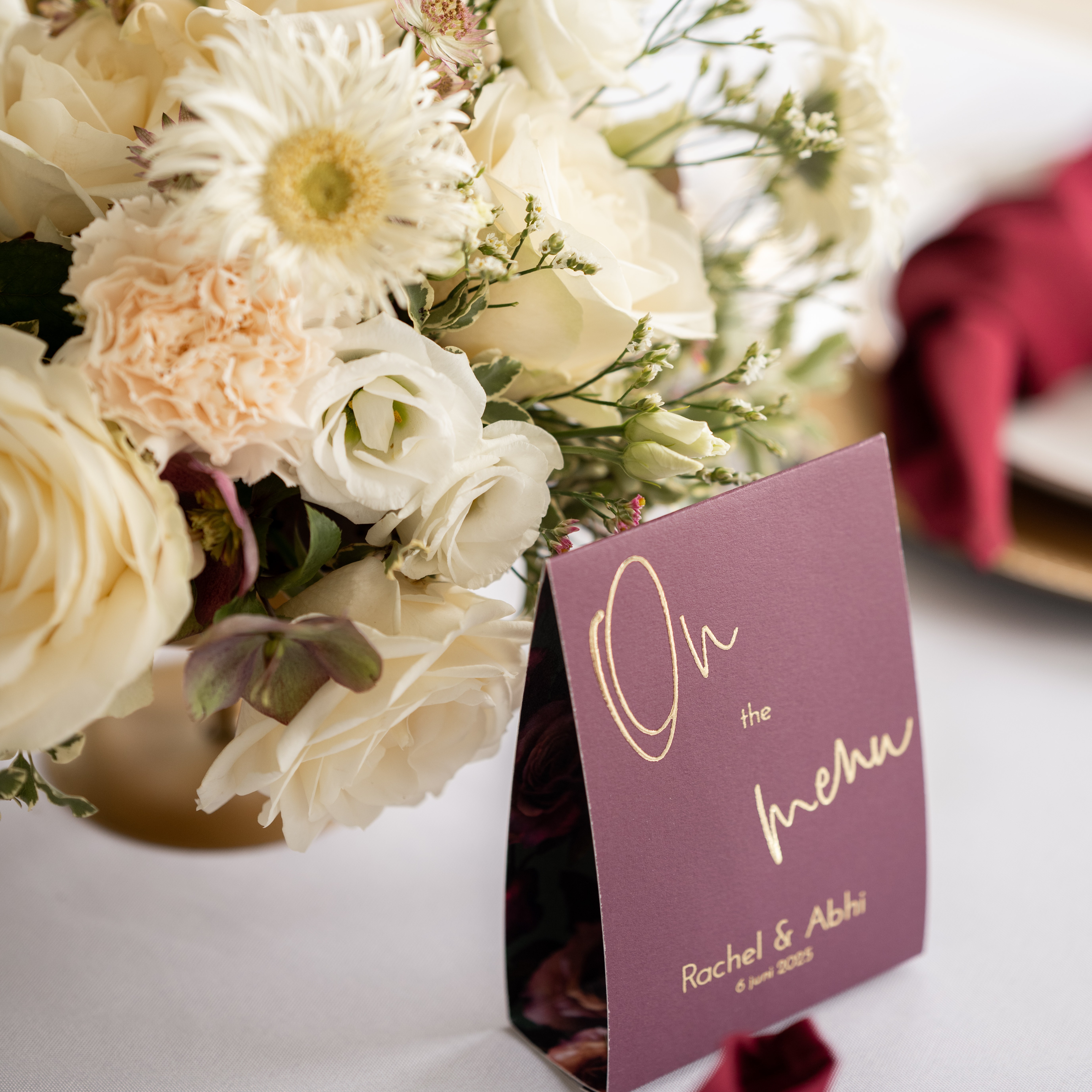 menukaart tentvorm bordeaux goudfolie