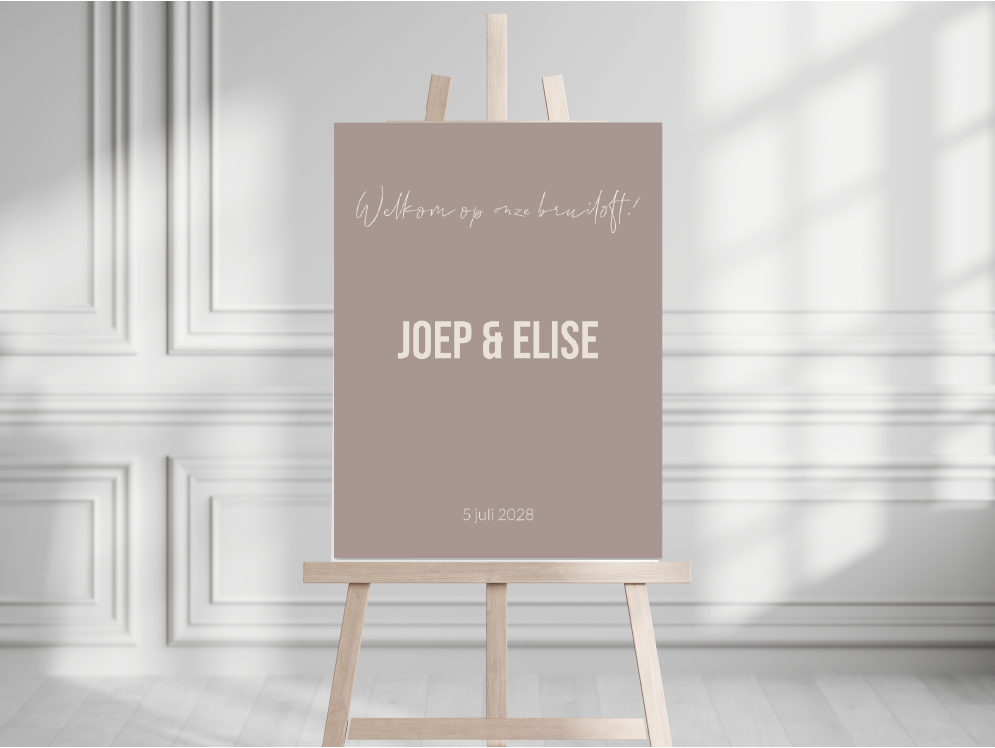 Dit bord (55x73 xm) schittert op jullie bruiloft bij de ceremonie én bij het feest 's avonds. Zo mooi als alles bij elkaar past... Joep en Elise