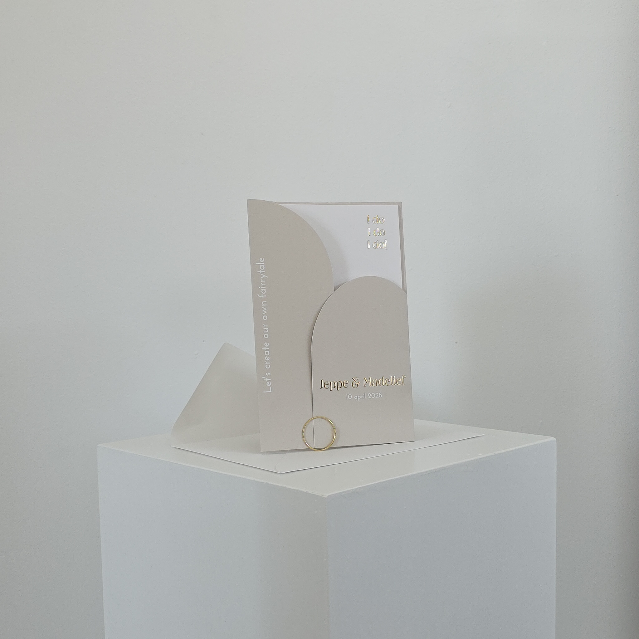 Insteekmapje voor bij je trouwkaart in wit met beige. Aan te passen naar je eigen kleurenpalet.