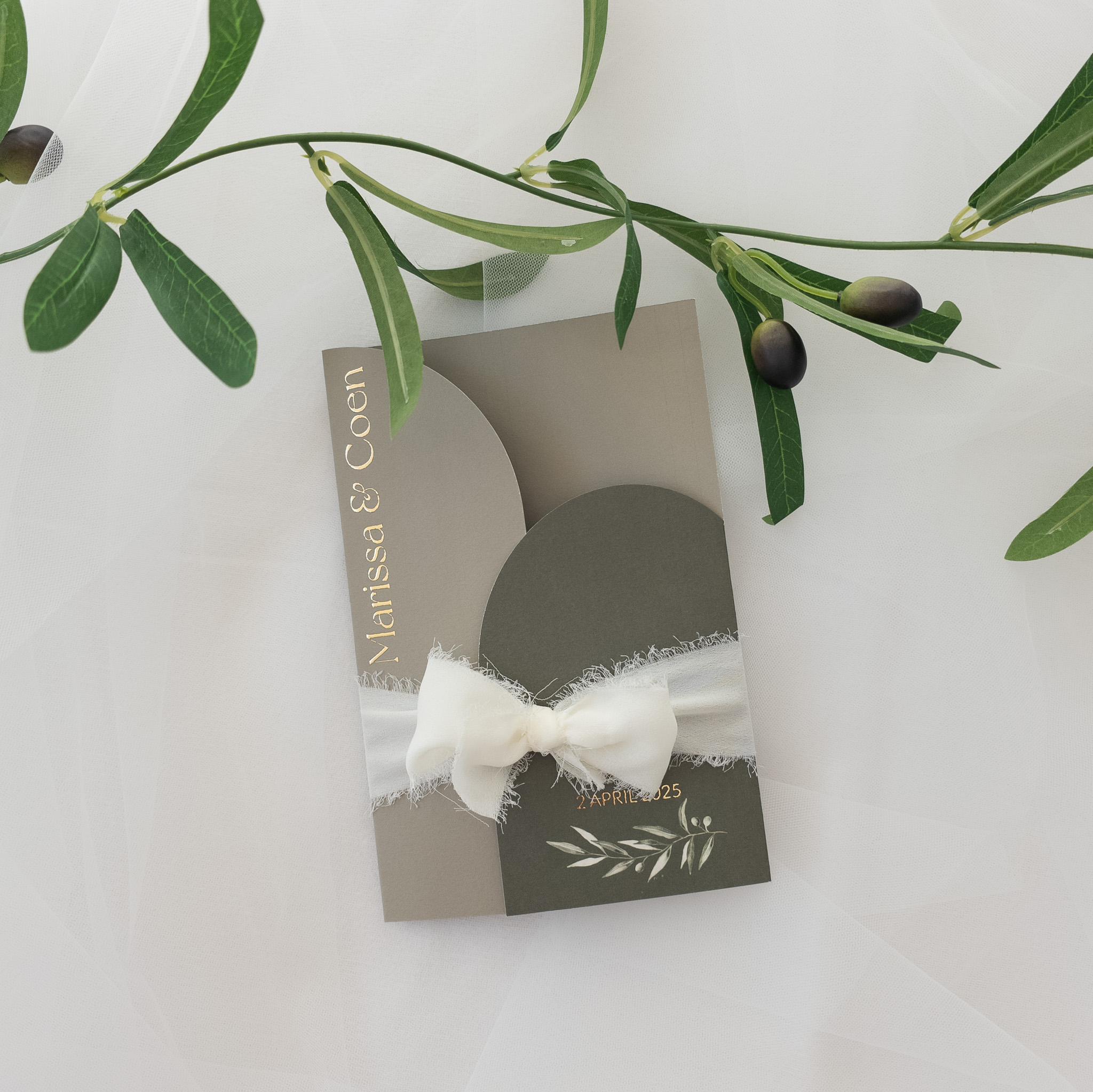 Dit mapje is alleen geschikt voor trouwkaarten met een afmeting van 11x 17 cm. Dit insteekhoesje maakt deel uit van de trouw huisstijl Olive green waar diverse onderdelen passend bij deze mooie wedding stationery in te vinden zijn.