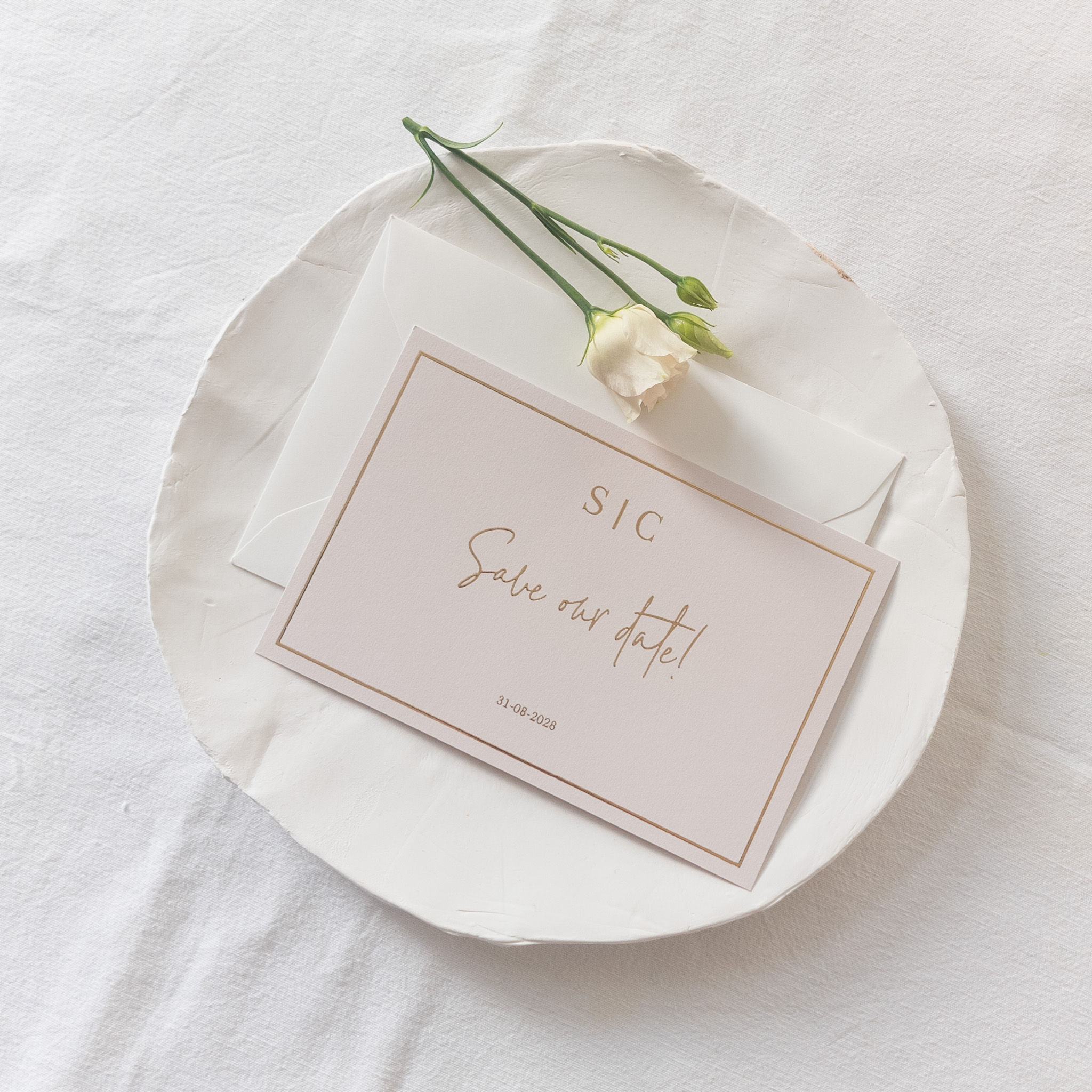 Save the date beige met goudfolie