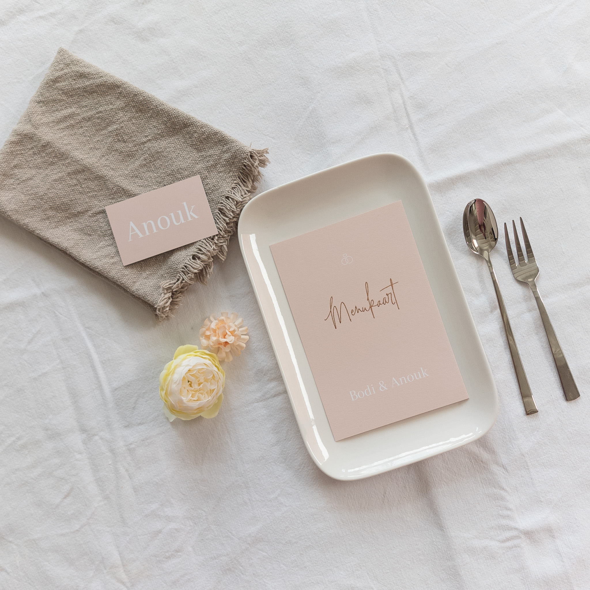 Menukaart in de huisstijl summer chic, combineer er op los met alle mooie items die jij wilt gebruiken voor jullie mooiste dag! Natuurlijk kan alles naar wens worden aangepast. Vind je het lastig om een set samen te stellen? Ik help je graag! Stuur me gerust een berichtje.