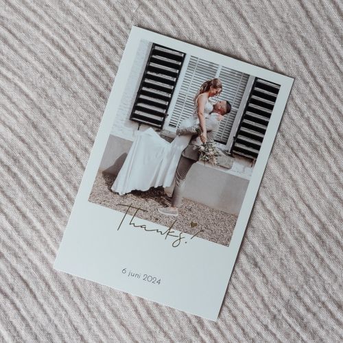 Stuur je gasten na jullie huwelijk een mooie foto om ze te bedanken voor hun aanwezigheid! Chantal en Fabian