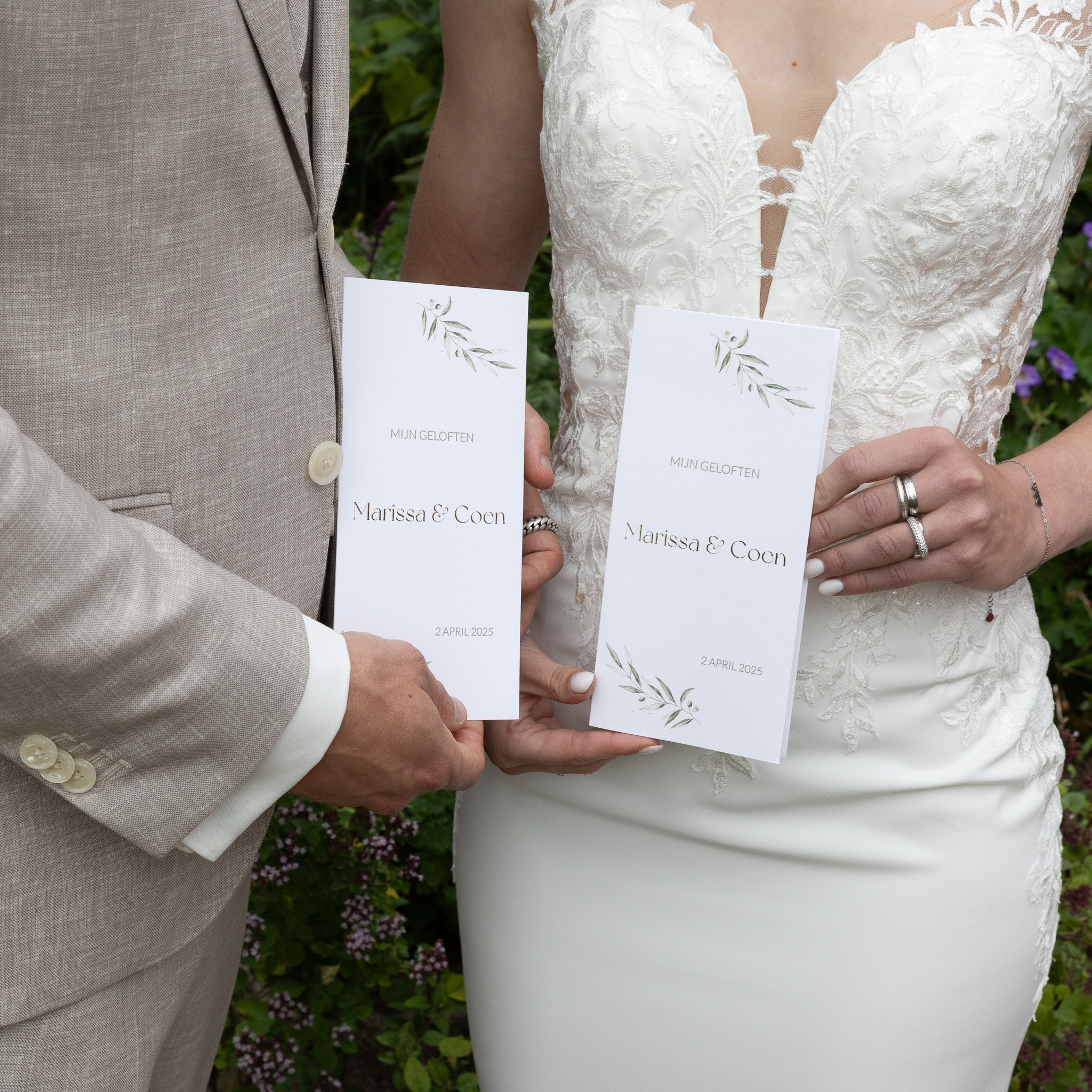 De geloften boekjes passen in de trouw huisstijl Olive green van Marissa en Coen