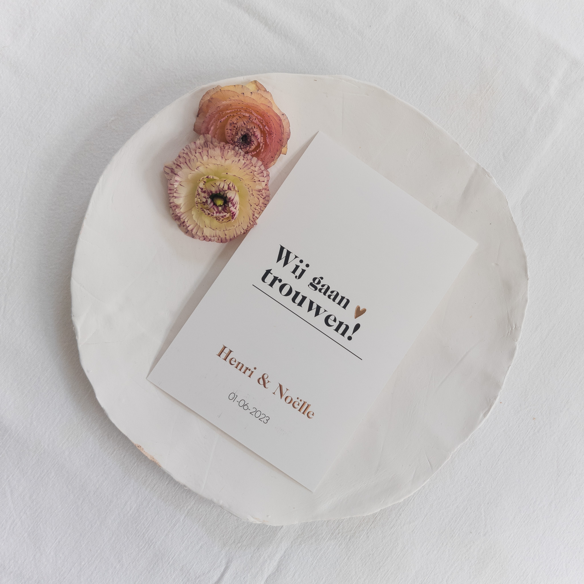 Voeg een foto van jullie toe en bestel onze labelkaarten los erbij.